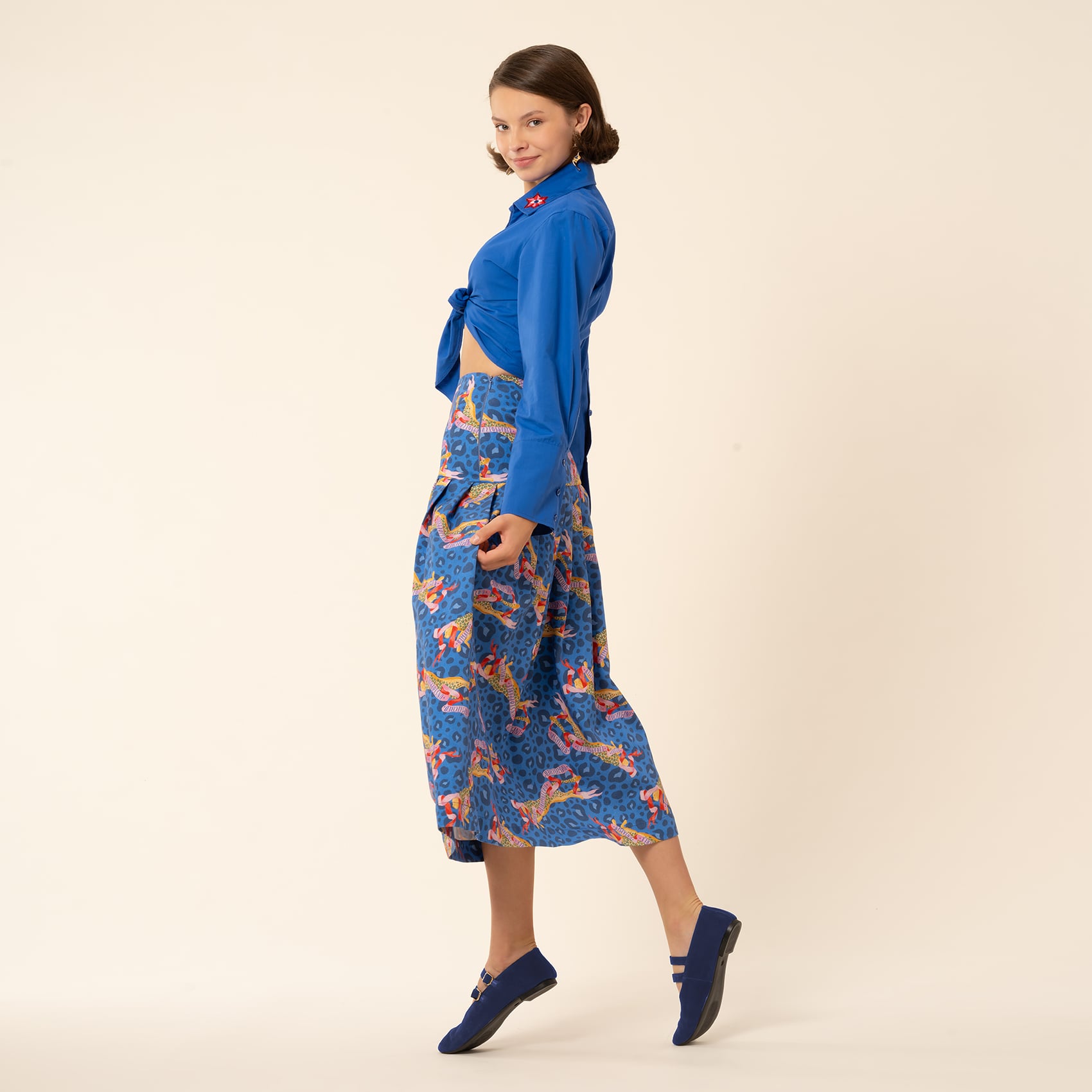Protı Önden Bağlamalı Poplin Gömlek - Lacivert