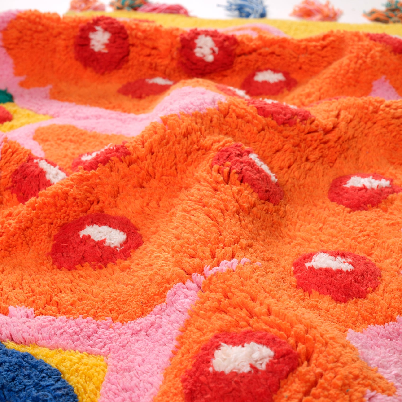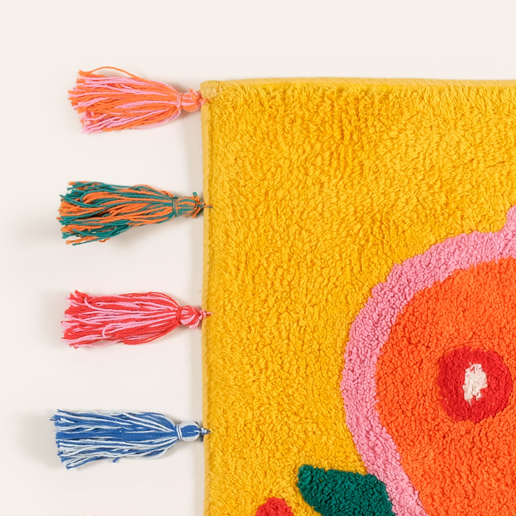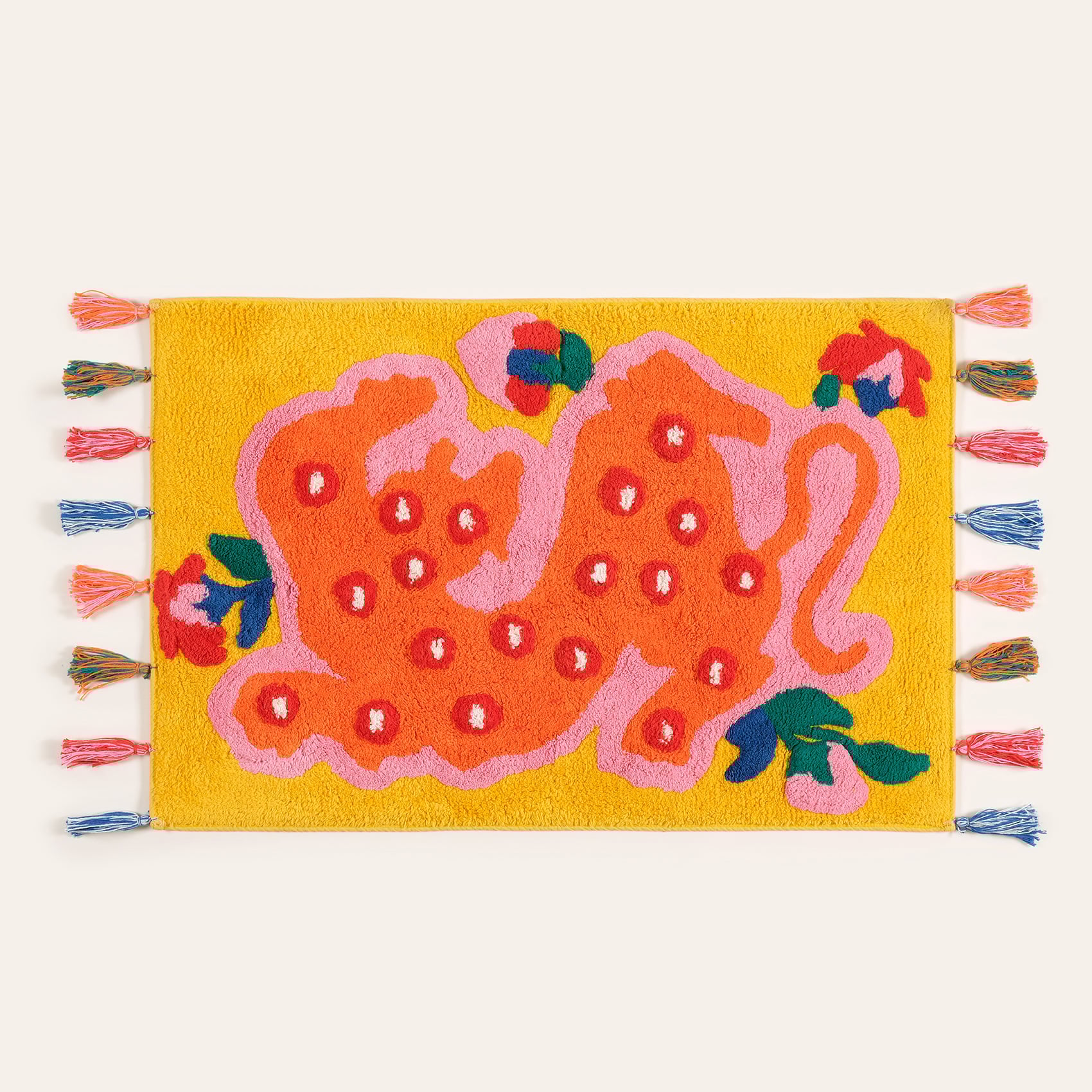 Maximalist koleksiyonunda yer alan Punjab banyo paspası, cesur sarı zemin üzerindeki eğlenceli turuncu ejderha deseni ve rengarenk püskülleriyle adeta bir neşe patlaması yaşatıyor. 60x90 cm boyutunda ve %100 pamuktan üretilen bu tasarım, sadece ayaklarınıza yumuşaklık sunmakla kalmıyor, aynı zamanda tasarımıyla da banyonuzda ilham verici bir hikâyeye anlatıyor. Kolay bakımıyla 40°C’de makinede yıkanabilen bu paspas, hem estetik hem de pratik bir seçim!