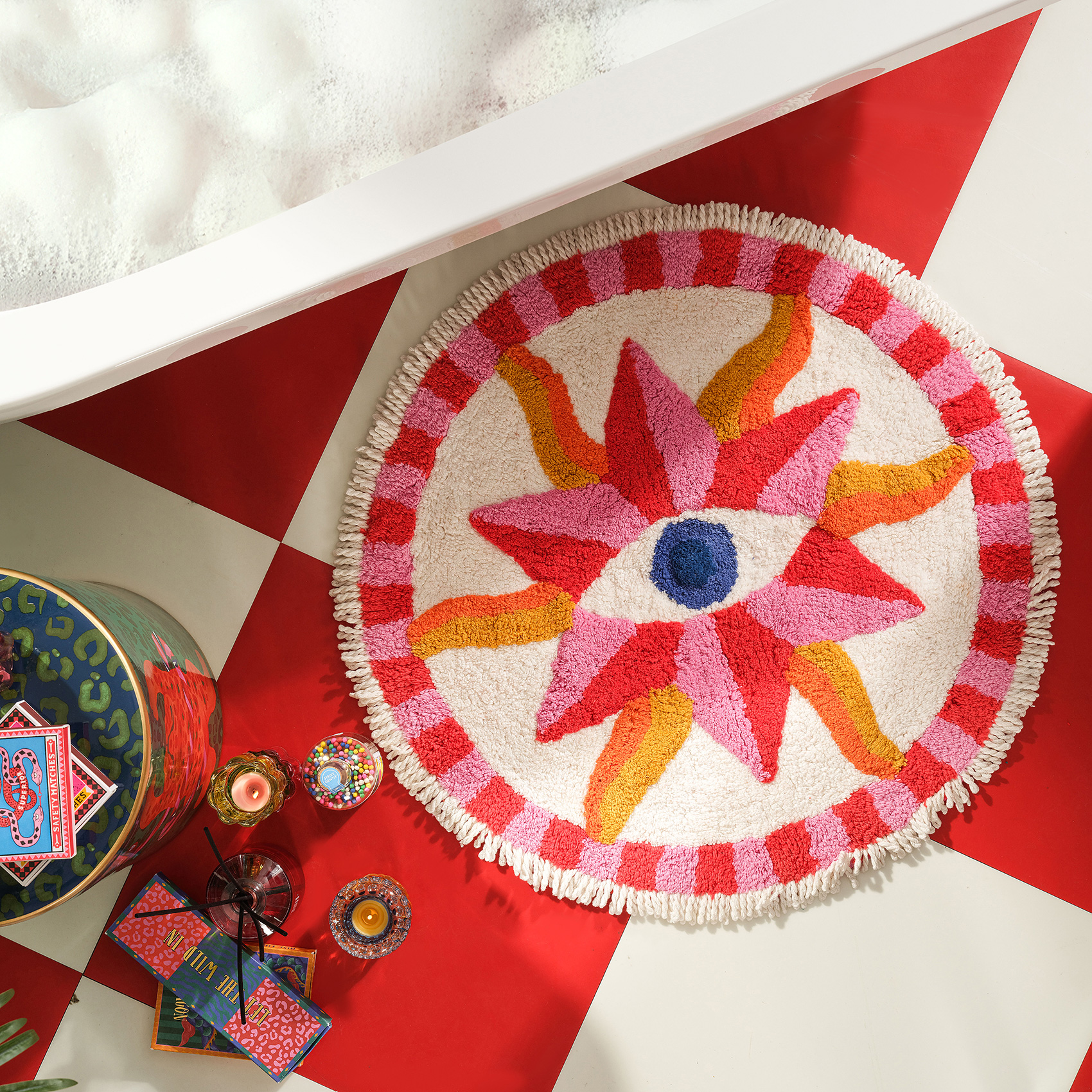 Bu banyo paspası, banyonuzda neşe dolu bir enerji patlaması yaşatmak üzere tasarlandı. Maximalist koleksiyonunun cesur ve eğlenceli ruhunu banyolarınıza taşıyan Punjab %100 pamuk banyo paspası, atipik formu ve üzerindeki mesaj ile hem şıklık hem de pozitif bir enerji sunuyor. Canlı renklerin mükemmel uyumuyla banyonuza hareket kazandıran bu paspas, dokusuyla ayaklarınızı şımartırken dayanıklılığıyla uzun süre kullanım sağlıyor. Çamaşır makinesinde 40 °C sıcaklıkta hassas yıkayabilirsiniz ve kurutma makinasında kurutabilirsiniz.