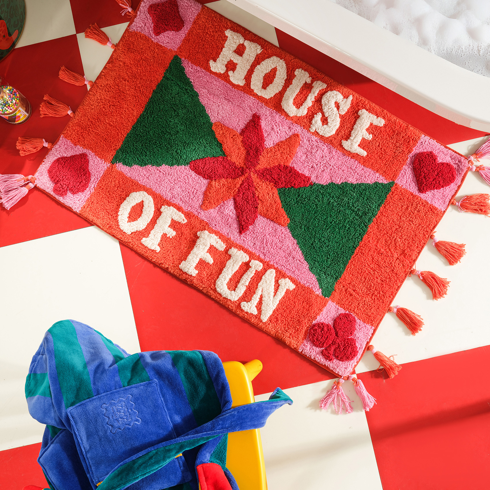 Capcanlı renkler, yumuşacık dokular ve göz alıcı bir enerji… Punjab Fun banyo paspası, Hindistan’da ustalıkla üretildi; ama kalbi Cheerland koleksiyonunun coşkusuyla atıyor. İpliğine işleyen renklerle canlılığını uzun süre koruyan bu tasarım, ayaklarınızı şeker gibi sarar ve zemine sıkıca tutunur. Tam bir dans pisti havası. 60x90 cm’lik bu renk şöleniyle banyonuza festival neşesini taşıyın.