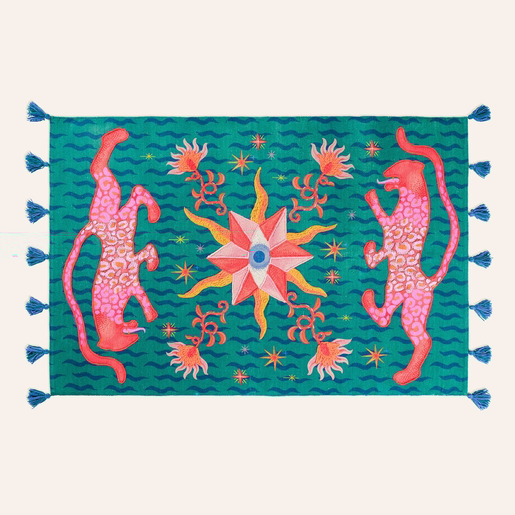 Canlı renklerle dokunmuş bir hayal âlemi düşünün; cesur, masalsı ve baştan sona yorumla dolu. Rajna nakışlı kilim, Zsa Zsa Zsu tasarım ekibinin göz alıcı evreninden çıkan, sıradanlığa meydan okuyan bir yer dokuması. Her bir motif, Hindistan’daki yetkin ellerin zamansız teknikleriyle hayat buluyor. %100 pamuk yüzeyi, yumuşaklığının ötesinde; geleneksel işçilikle birleşerek adeta bir sanat zeminine dönüşüyor. Maximalist koleksiyonunun en oyunbaz parçalarından biri olan Rajna, evinize hem renk hem de özgür bir ruh taşıyor.