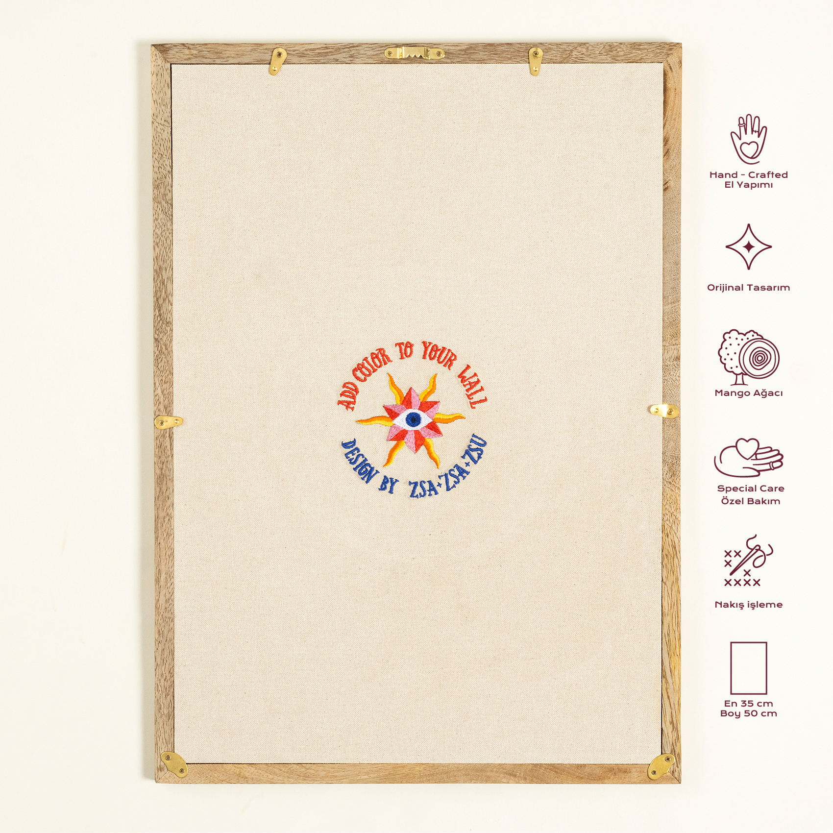 Rajpath nakışlı dekoratif duvar panosu ile duvarlarınızda eğlencenin ateşini yakın. “This is going to be fun” mesajı, turuncu bir kaplanın kükremesiyle birleşiyor; kırmızı ve pembe çizgiler ritmi yükseltiyor, mavi ve yeşil arka plan özgürlüğün kapısını aralıyor. Kaplanın cesur duruşu tekdüzeliğe meydan okurken, renkler yaşam alanınızı bir kutlamaya dönüştürüyor. Mango ağacından çerçevesi, %100 pamuk kumaşı ve titiz nakış işçiliğiyle hazırlanan pano 50 x 35 cm ölçüsünde. Tek başına oyunbaz bir manifesto; serideki diğer panolarla yan yana geldiğinde duvarlarınız Maximalist bir şenliğe dönüşür.
