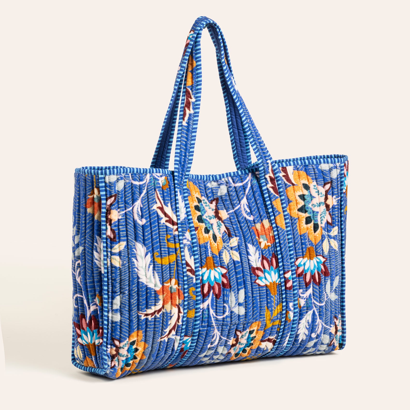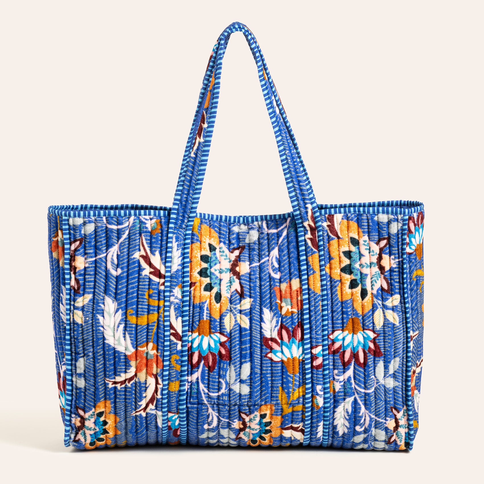 Rajpath Baskılı Kadife Pamuk Çanta - Koyu Mavi