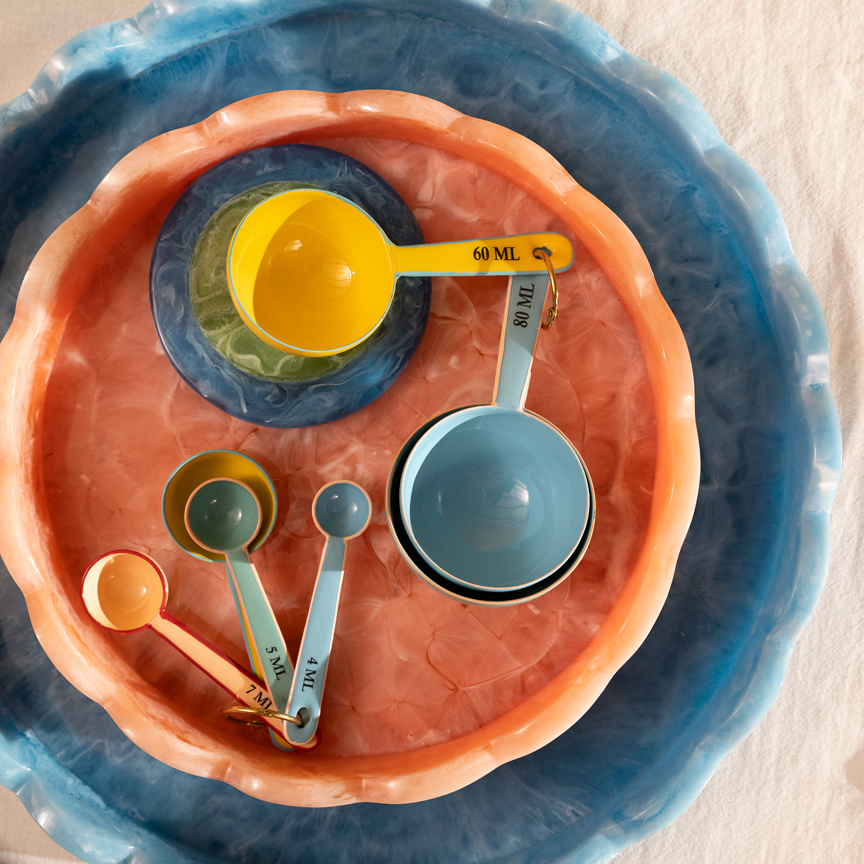 Ölçüler net, ama ilham hep özgür! Zsa Zsa Zsu’nun cesur ruhu, Rampur 3’lü çelik ölçü kaşık seti ile mutfaklara yaratıcı bir dokunuş katıyor. Hindistanlı ustaların el emeğiyle işlenen göz alıcı emaye kaplaması ve %100 gıda dostu paslanmaz çeliğiyle Rampur, her tarifi bir ritüele, her sunumu stilize bir deneyime dönüştürüyor. Setteki kaşıklar, 60ml, 80ml ve 120ml ölçülerindedir. Türkiye’de tasarlanmış, Hindistan’da üretilmiştir.