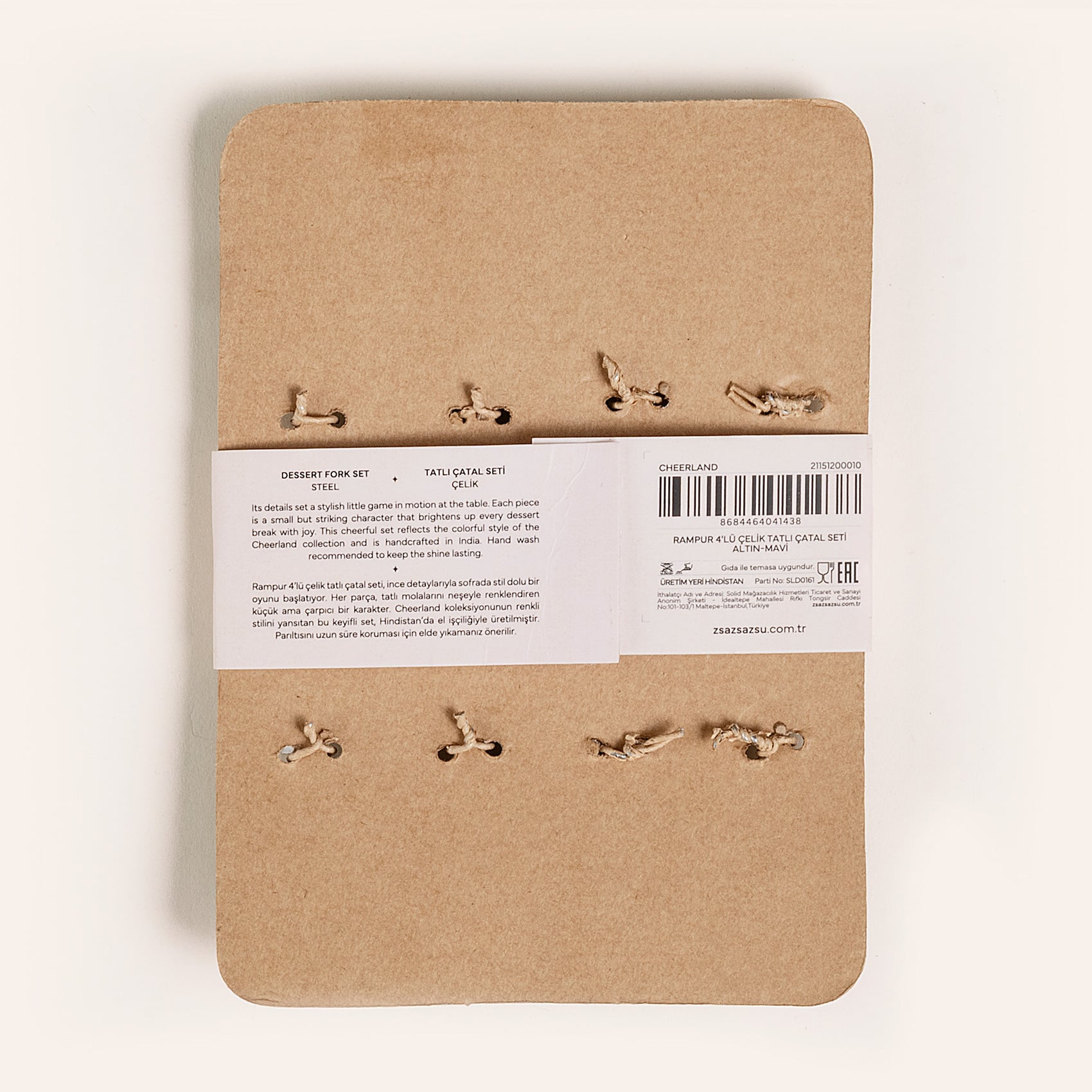 Rampur 4’lü çelik tatlı çatal seti, ince detaylarıyla sofrada stil dolu bir oyunu başlatıyor. Her parça, tatlı molalarını neşeyle renklendiren küçük ama çarpıcı bir karakter. Cheerland koleksiyonunun renkli stilini yansıtan bu keyifli set, Hindistan’da el işçiliğiyle üretilmiştir. Parıltısını uzun süre koruması için elde yıkamanız önerilir.