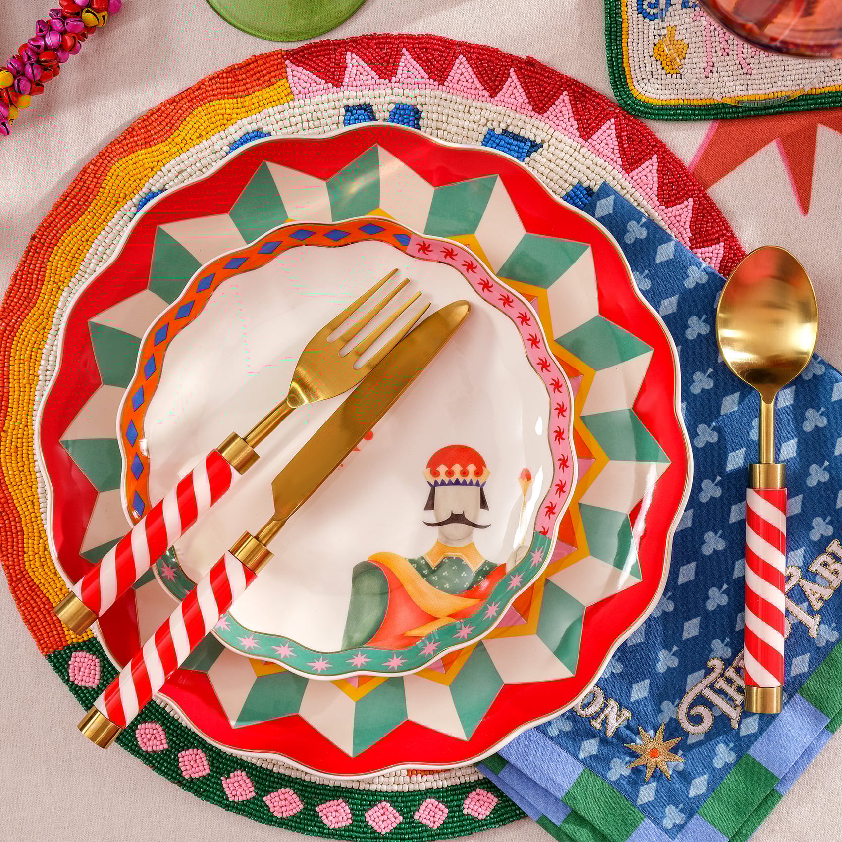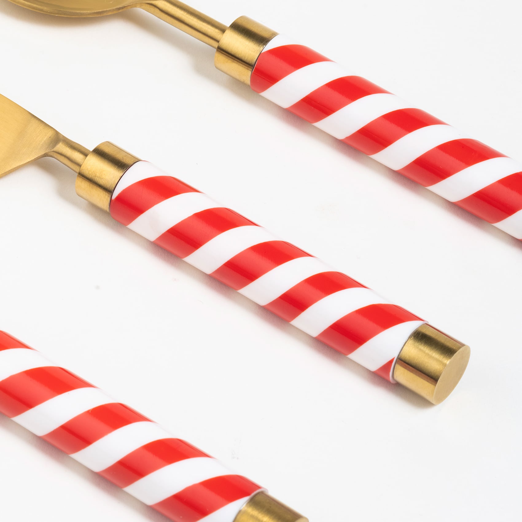 Kutlama sofrasının en neşeli eşlikçileri burada. Kırmızı beyaz spiral saplarıyla göz alıyor, altın tonlu çeliğiyle sofraya anında şıklık katıyor. Hindistan’da özenle üretilen bu üçlü set, Cheerland koleksiyonunun enerjisini ve tatlı oyunbazlığını taşıyor. Özel günlerde ya da kutlama sofralarında başrolde. Rampur’la masalar tam anlamıyla şeker gibi. Parıltısını koruması için elde yıkamanızı öneriyoruz.