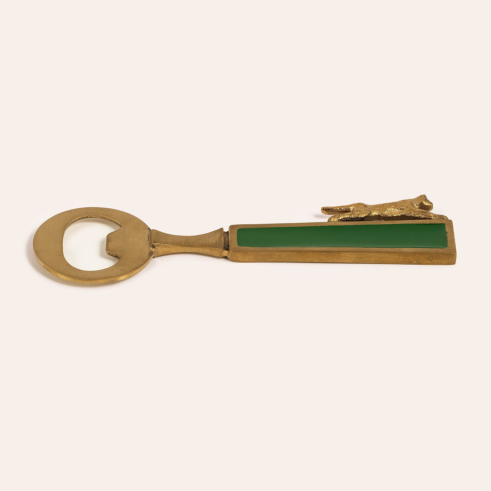 Şişenizi açarken tarzınızı konuşturun; çünkü bu parça alelade bir alet değil, adeta minyatür bir heykel. Altın tonlu çelik gövdesi, zümrüt yeşili pirinç sapı ve yukarı tırmanan minik figürüyle her açılışı küçük bir kutlamaya dönüştürüyor. Bir tutam mizah, bolca karakter ve ustalıkla şekillenmiş detaylar... Hepsi Hindistanlı zanaatkârların elinden.