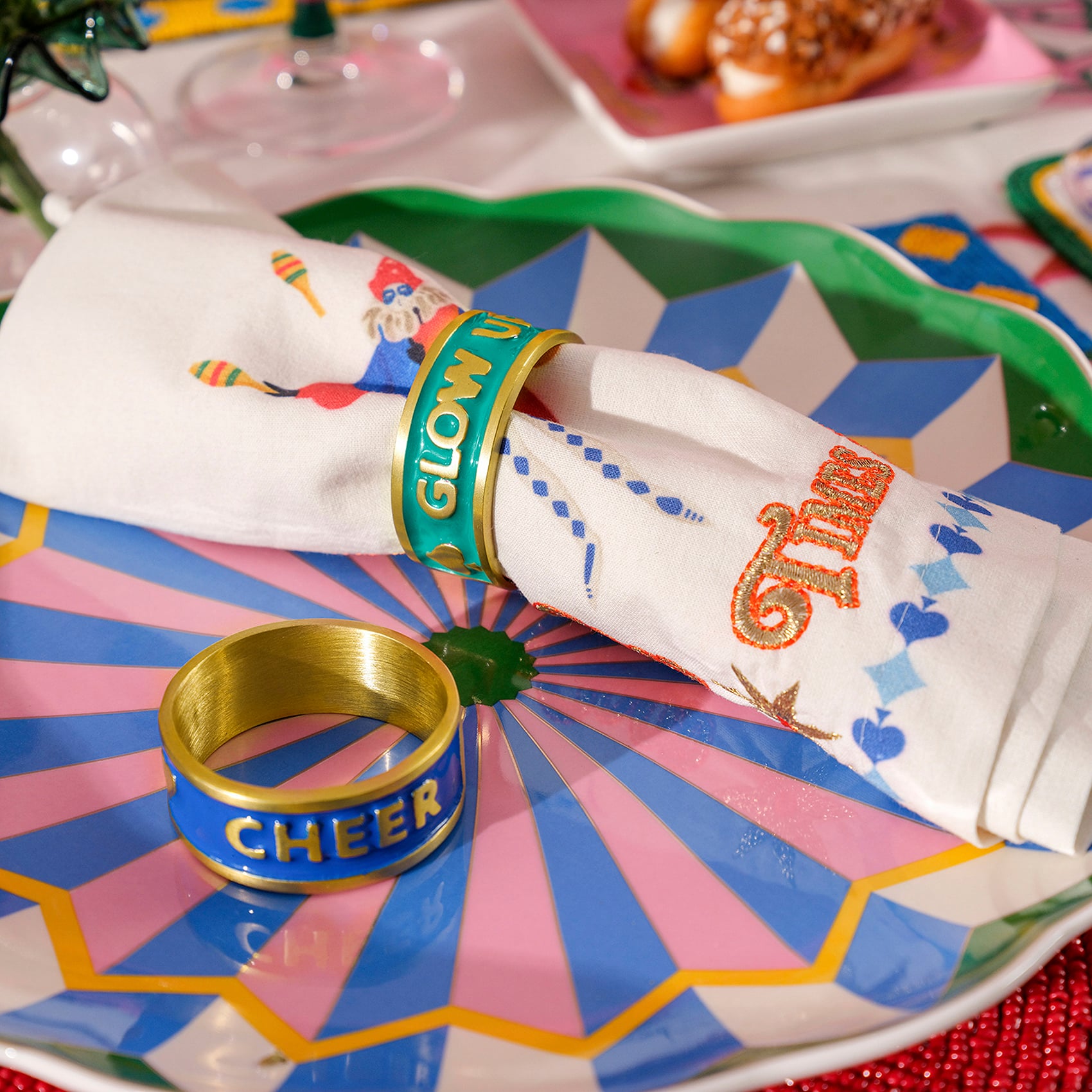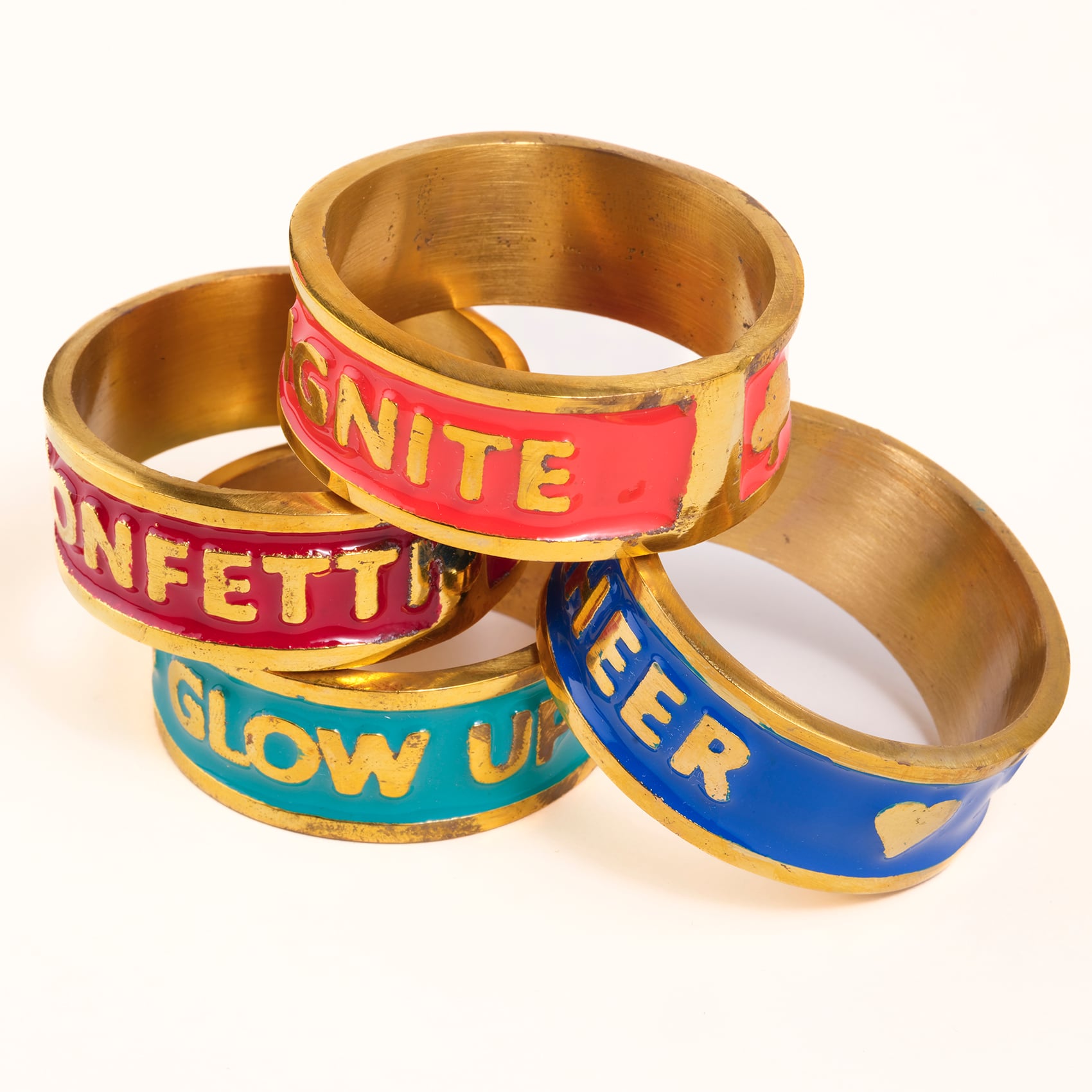 Sofranın etrafında sadece yemek değil, duygu da paylaşılır. Rampur 4’lü pirinç peçete halkaları, bu anlara renk katan küçük ama güçlü detaylardan. Parlak tonları ve anlam yüklü yüzeyiyle masa başında ilhamı, coşkuyu ve birlikte olmanın sıcaklığını çoğaltır. Hindistan’da ustalıkla üretilen bu özel set, Cheerland koleksiyonunun canlı ruhunu yansıtır.