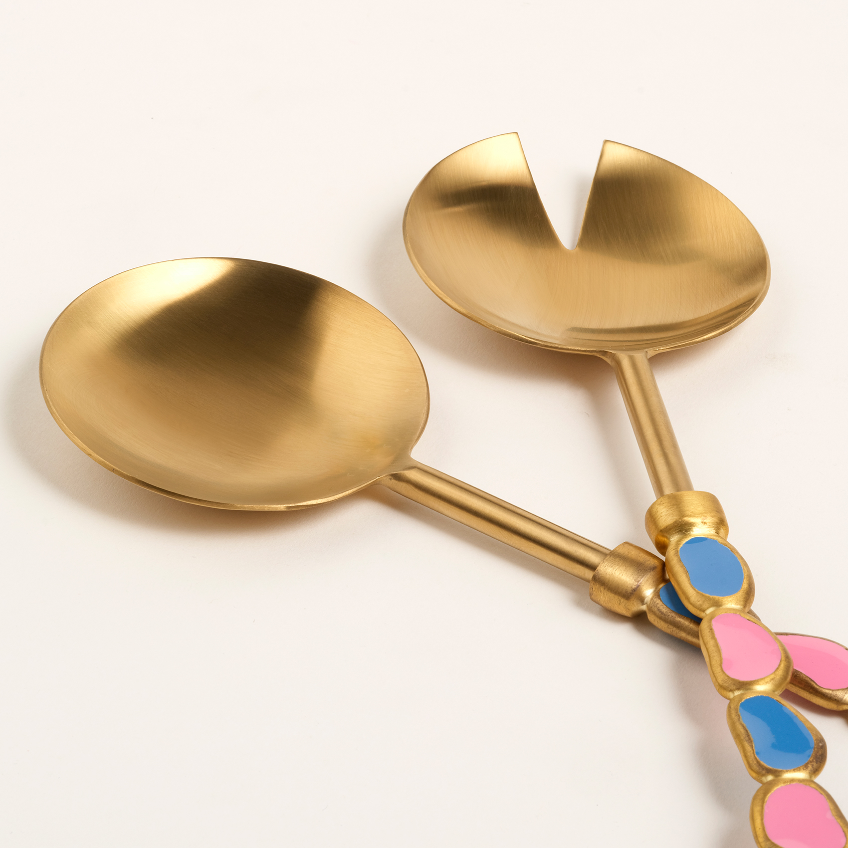 Rampur Çelik - Pirinç Salata Kaşık Seti 26 Cm Pembe - Mavi