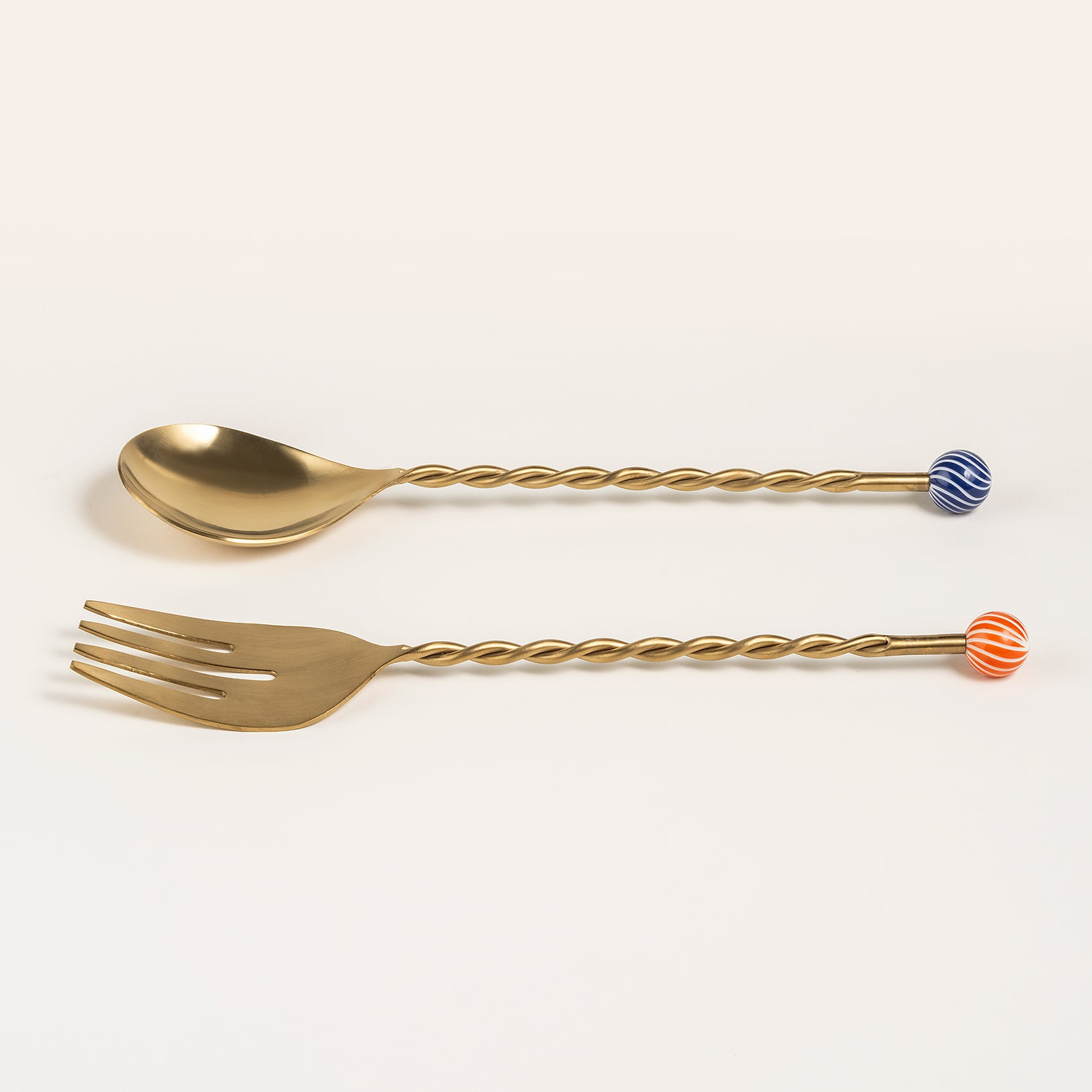 Rampur Çelik - Pirinç Salata Kaşık Seti 7x28x2 Cm Mavi-turuncu