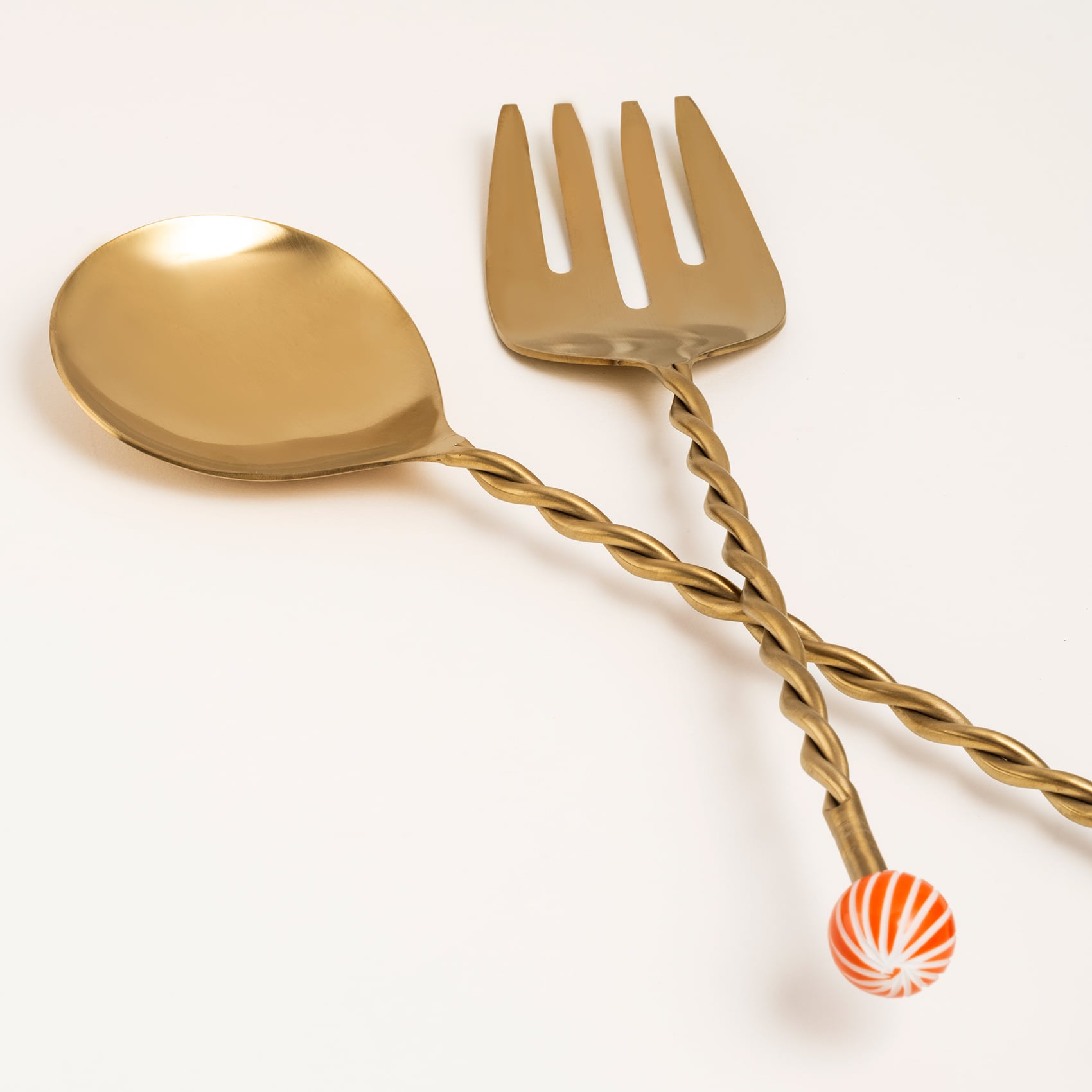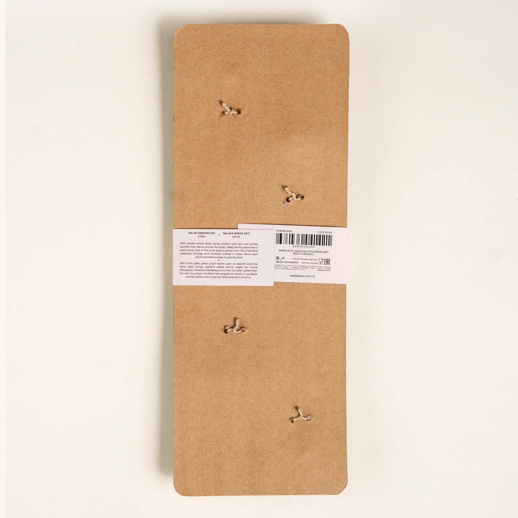 Altın tonlu çelik, şeker çizgili reçine uçlar ve kâsenin üzerinde dans eden burgu saplarla salata servisi neşeli bir ritüele dönüşüyor. Rampur 2’li salata servis seti demek, her öğüne kutlama havası katmak demek. Cheerland koleksiyonunun en oyunbaz üyelerinden biri olan bu parça, Hindistan’da sevgiyle ve özenle el işçiliğiyle üretildi. Işıltısını koruması için elde yıkamanızı öneririz.