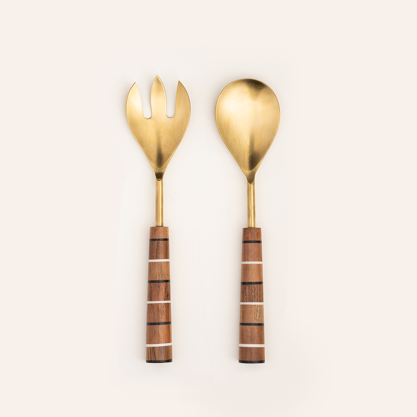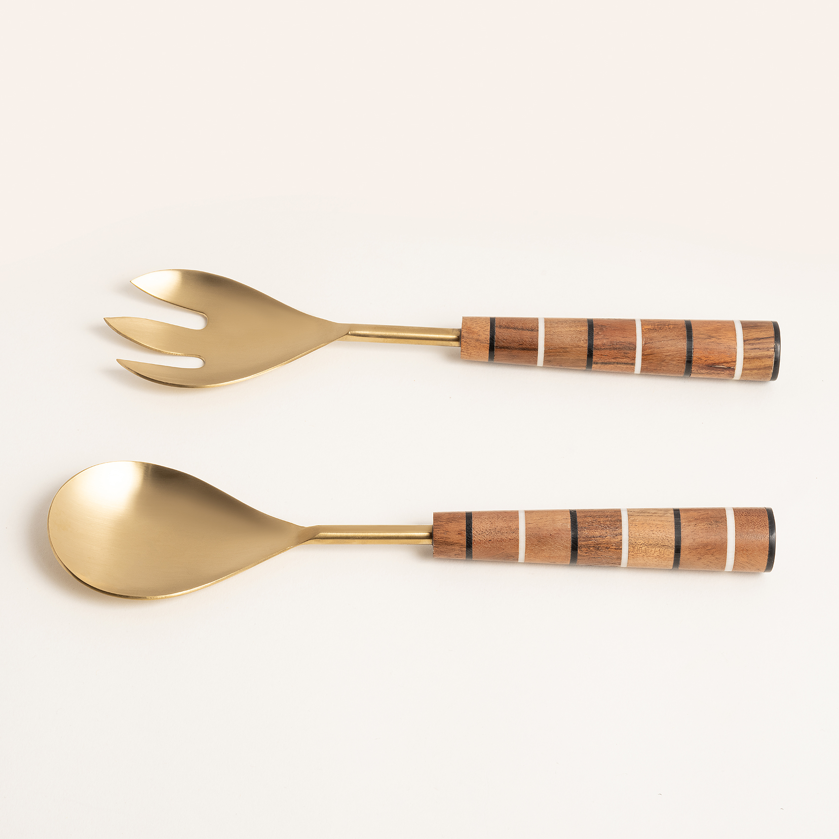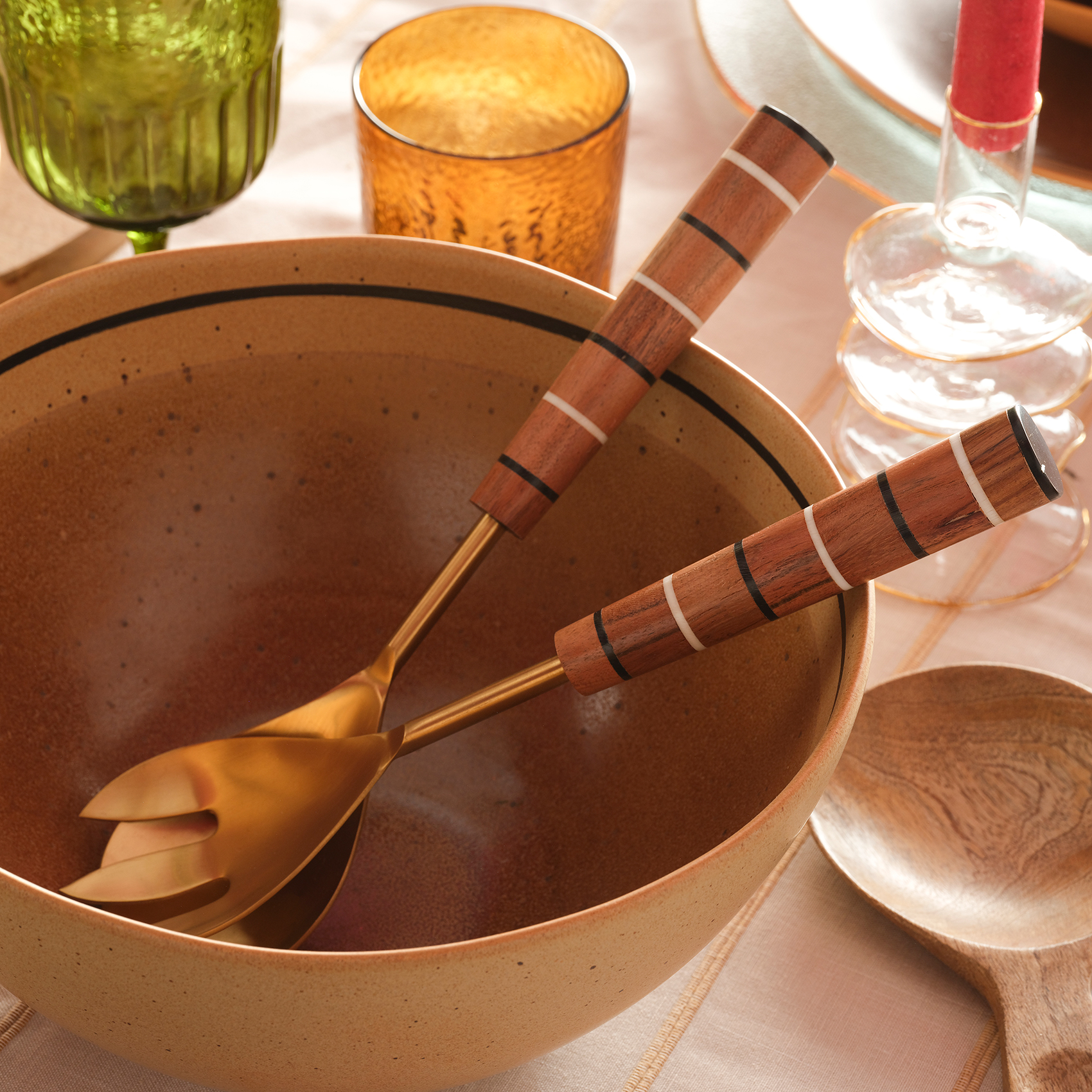 Rampur Çelik Salata Kaşık Seti 29 Cm Kahverengi - Altın