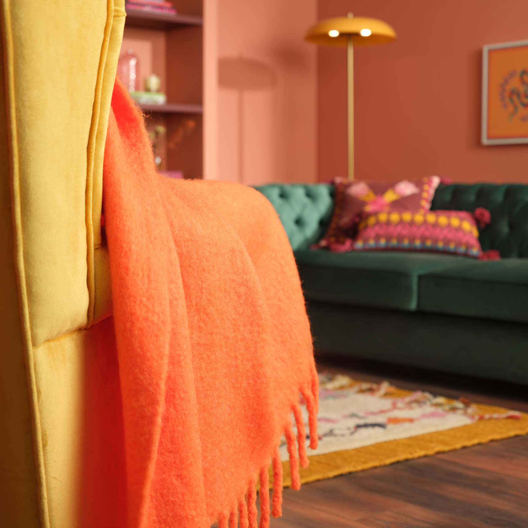 Ropar Saçaklı Akrilik Yün Akrilik Yün Koltuk Şalı 140x180 Cm Turuncu