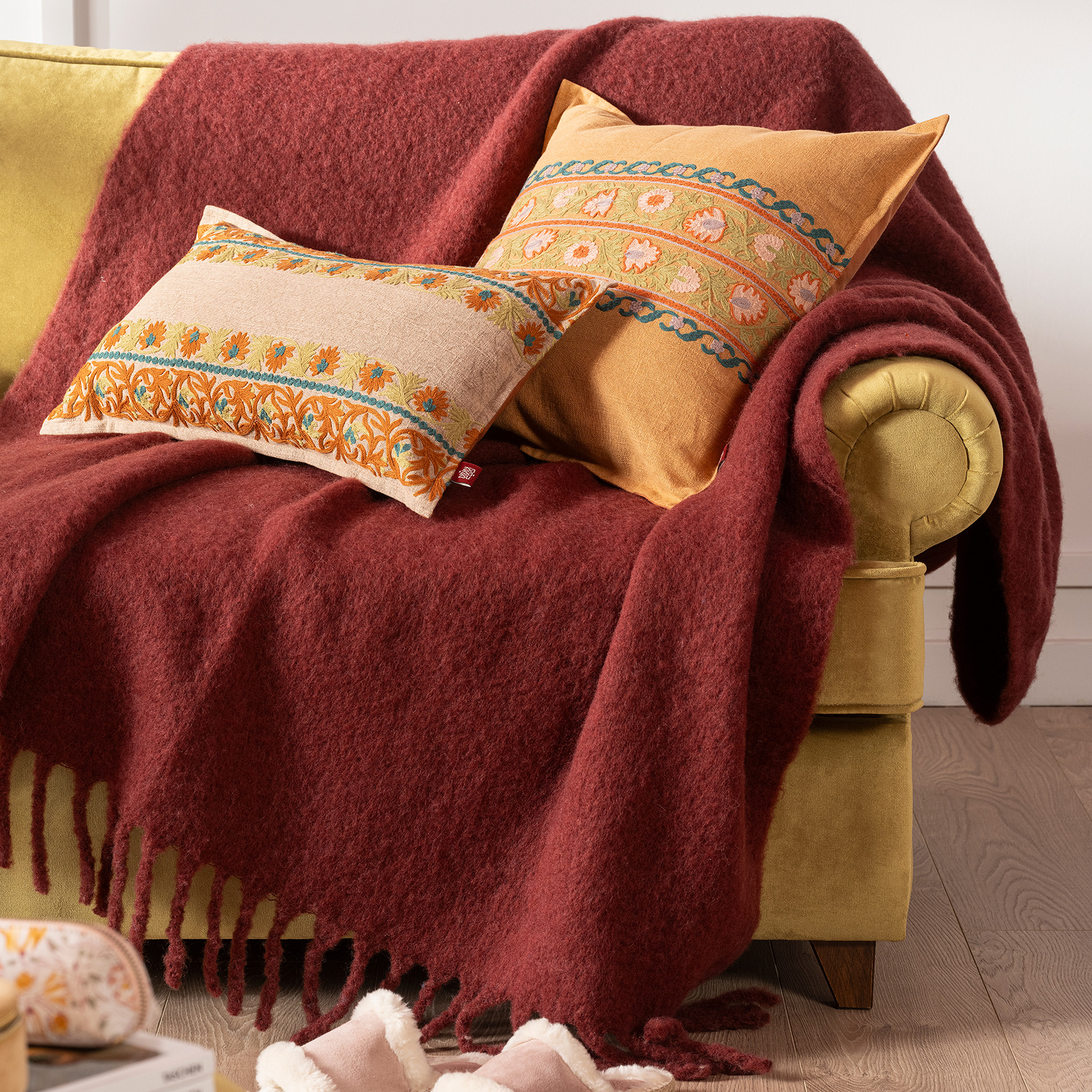 Heritage koleksiyonunun sofistike renk paletini yaşam alanınıza getiren Ropar saçaklı koltuk şalı, %20 yün, %60 akrilik ve %20 polyester karışımıyla, dayanıklılığı ve yumuşaklığı mükemmel bir dengede sunuyor. Saçaklı detaylarıyla hem sıcak hem de davetkar görünen Ropar, rengi ve dokusuyla otantik bir hava yaratıyor. Hindistan’da üretilmiştir. Yalnızca kuru temizleme yapın.