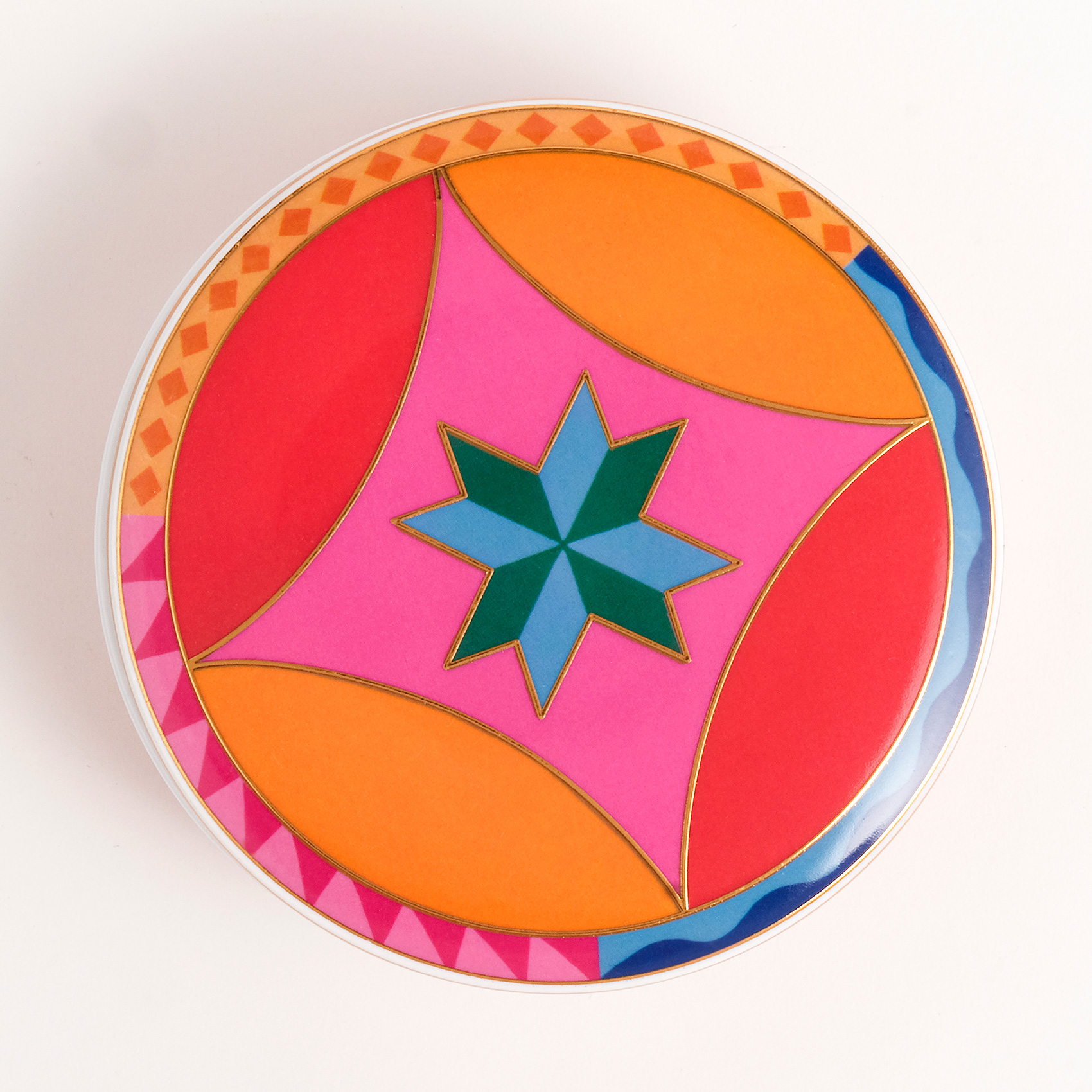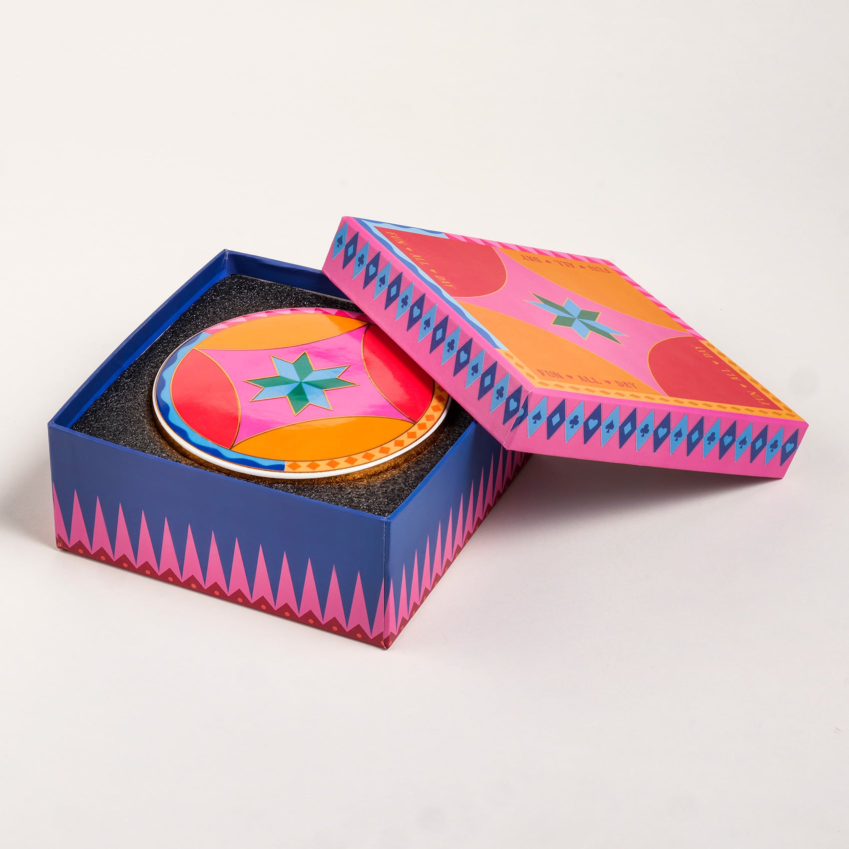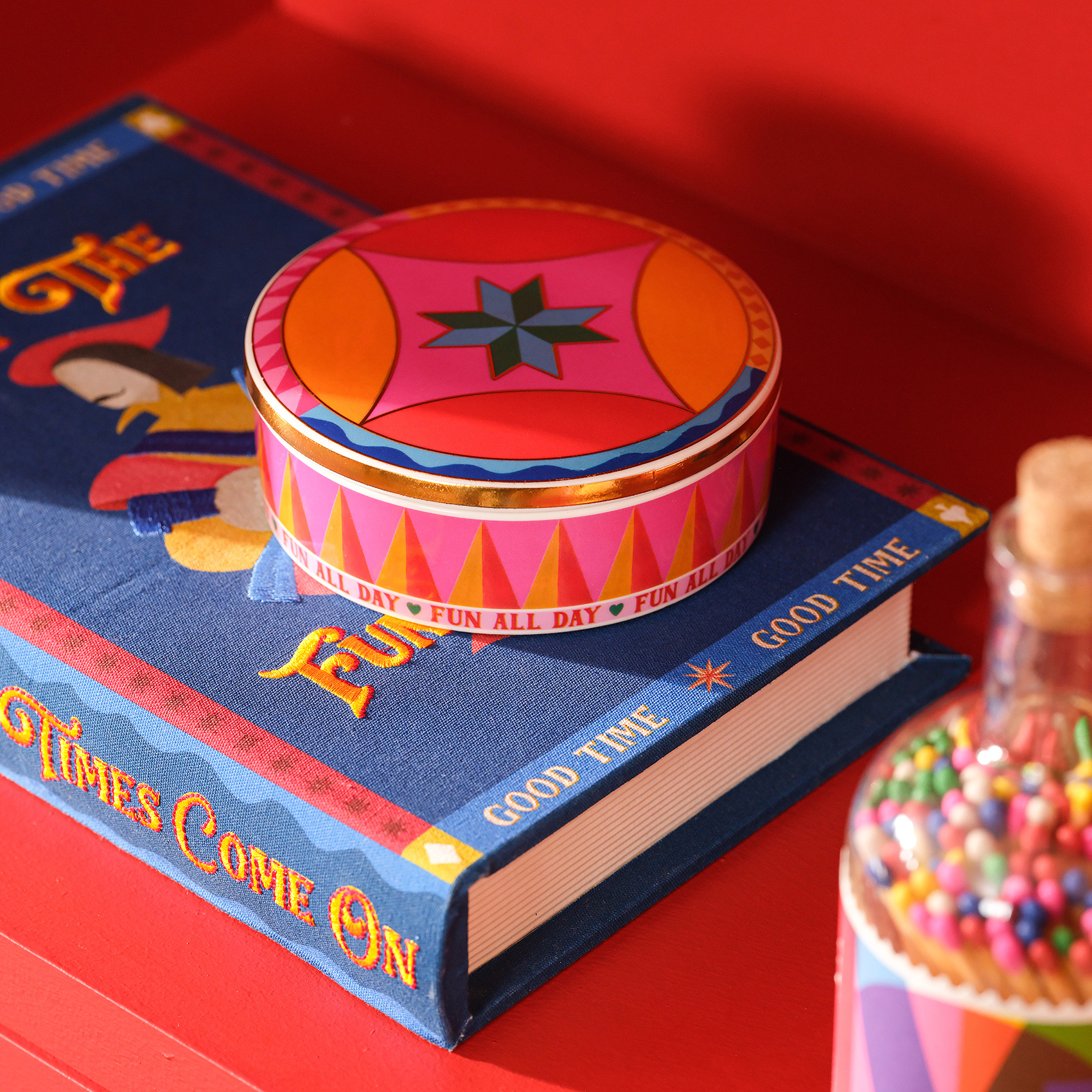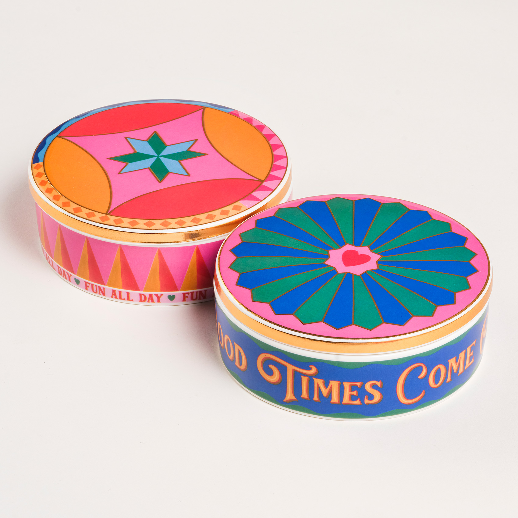 Shekou porselen dekoratif obje, Cheerland koleksiyonunun neşesini taşıyan kapaklı bir renk kutusu gibi. Oyunbaz, enerjik ve tek başına bile bir kutlama hissi yaratıyor. Eğlence mesajlarıyla bezeli yüzeyi, dinamik formu ve capcanlı renkleriyle bulunduğu her ortama karnaval havası katıyor. Parlak porselen yüzeyde hayat bulan desenler, usta işi dekal tekniğiyle uygulanıyor. Temizliği çok kolay. Nemli bir bezle silmeniz yeterli.