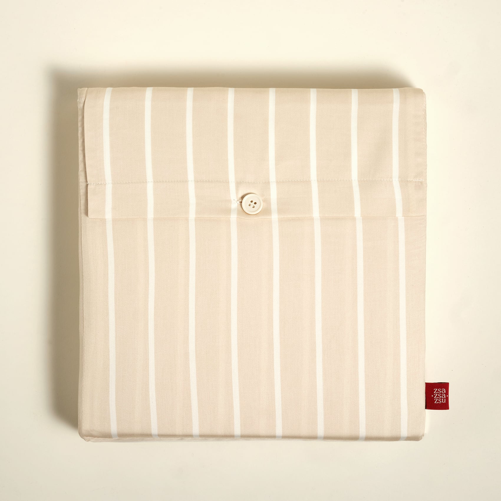 Solıd 300 Tc Geniş Çizgili Çift Kişilik Pamuk Saten Nevresim Seti 200x220 Cm Krem
