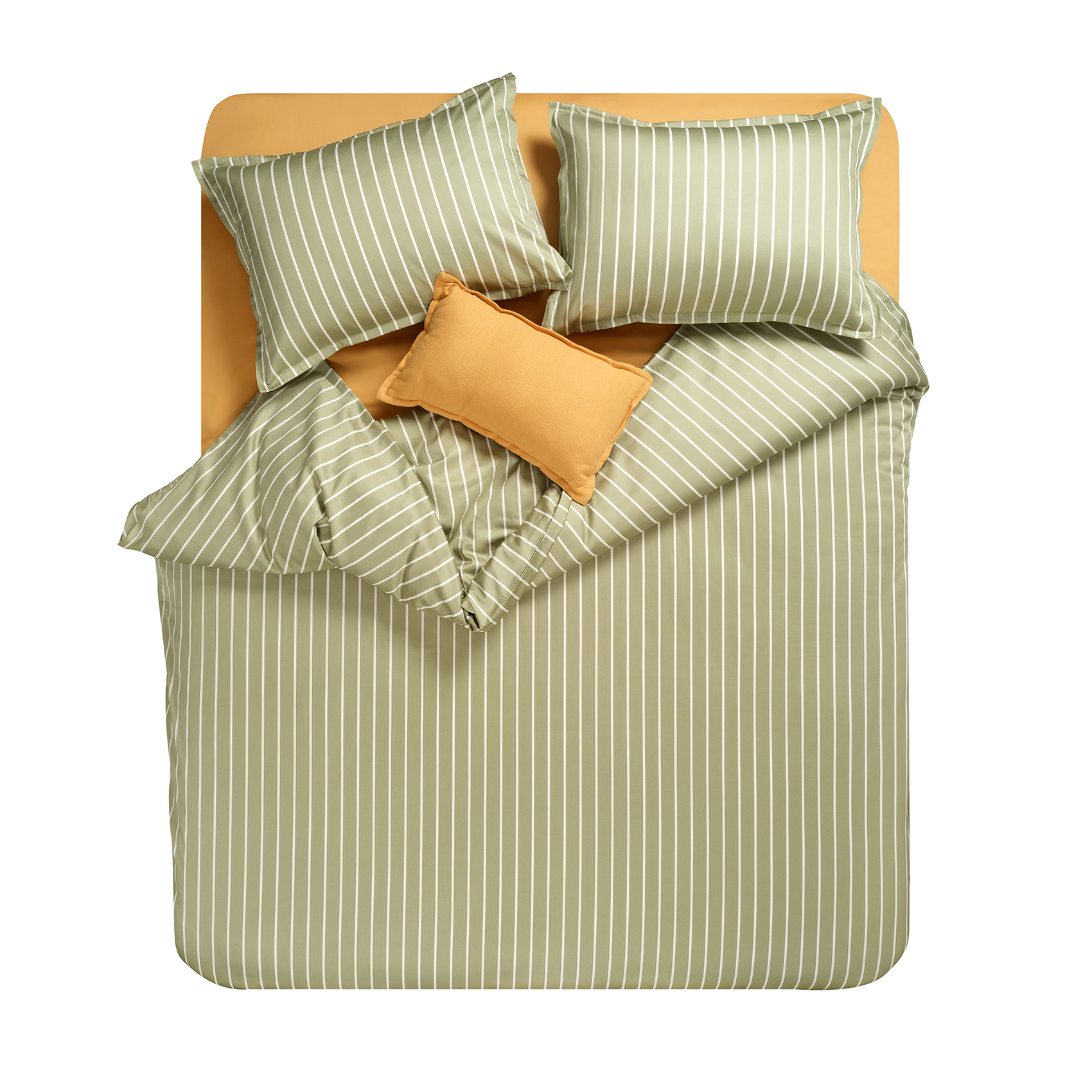 Solıd 300 Tc Geniş Çizgili Çift Kişilik Pamuk Saten Nevresim Seti 200x220 Cm Yeşil