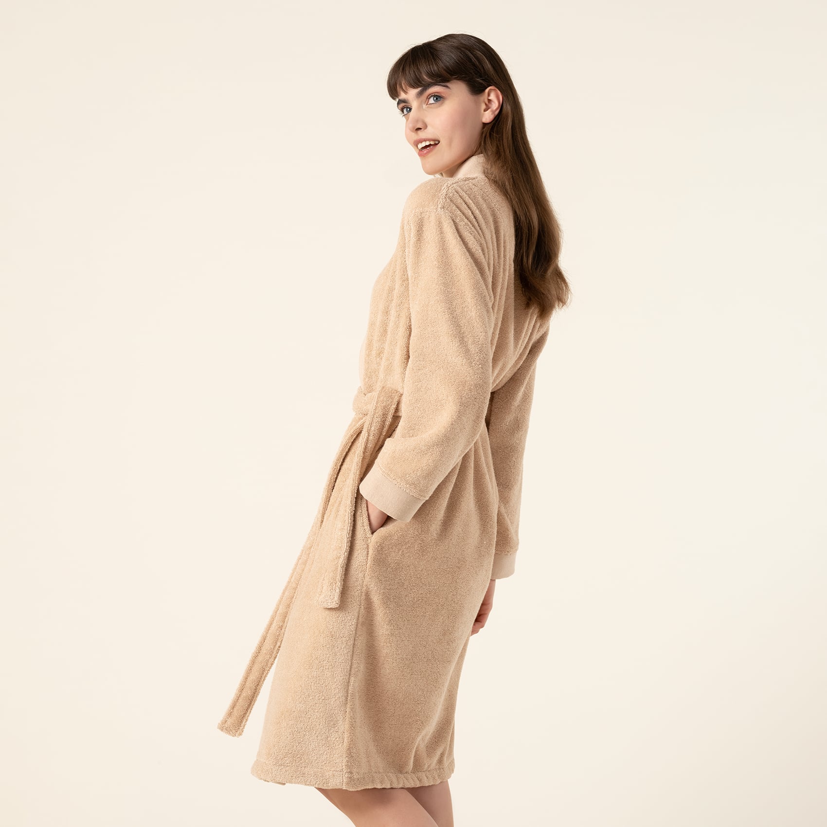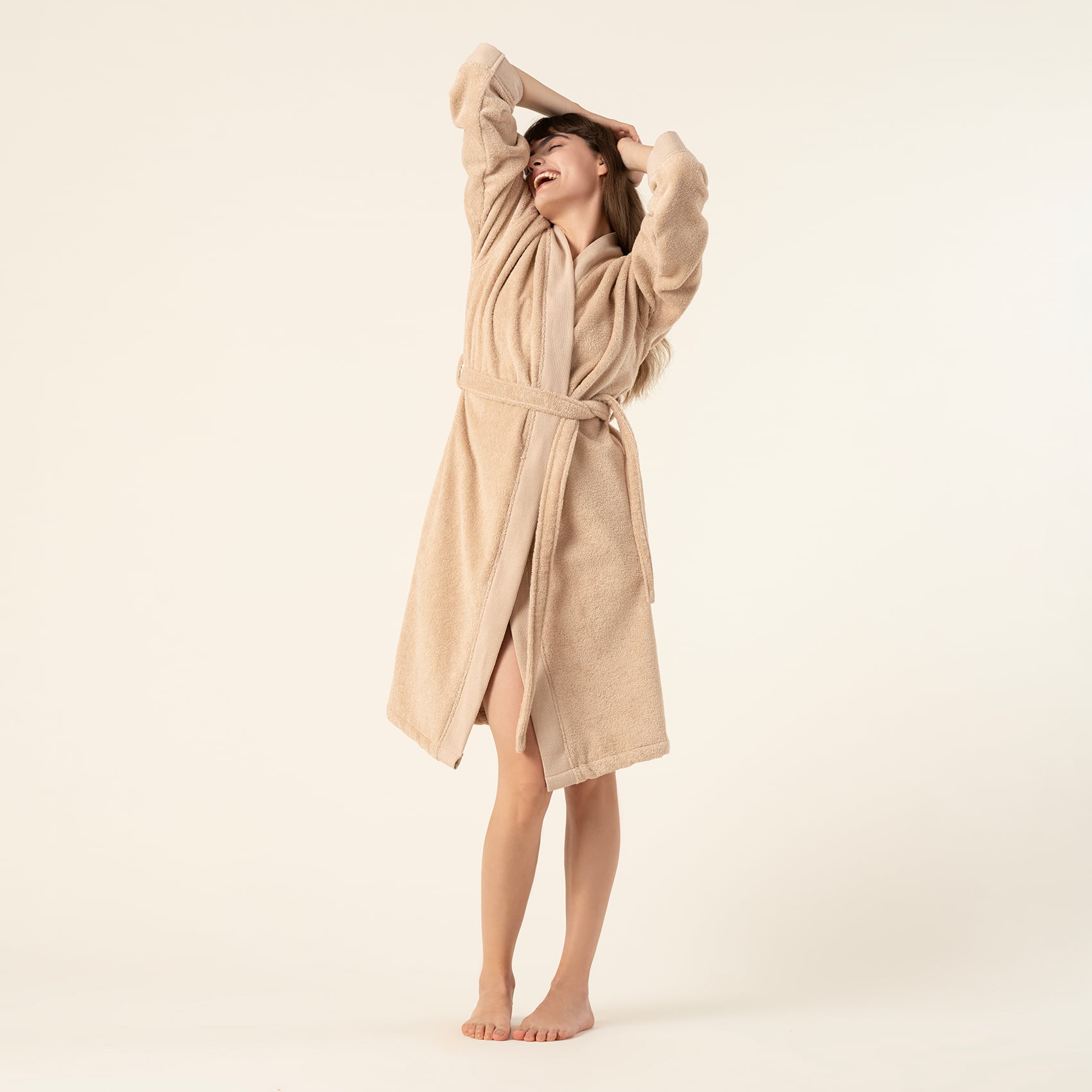 Solıd Bordürlü Pamuk %100 Pamuk Bornoz Medıum Beden Kum Rengı