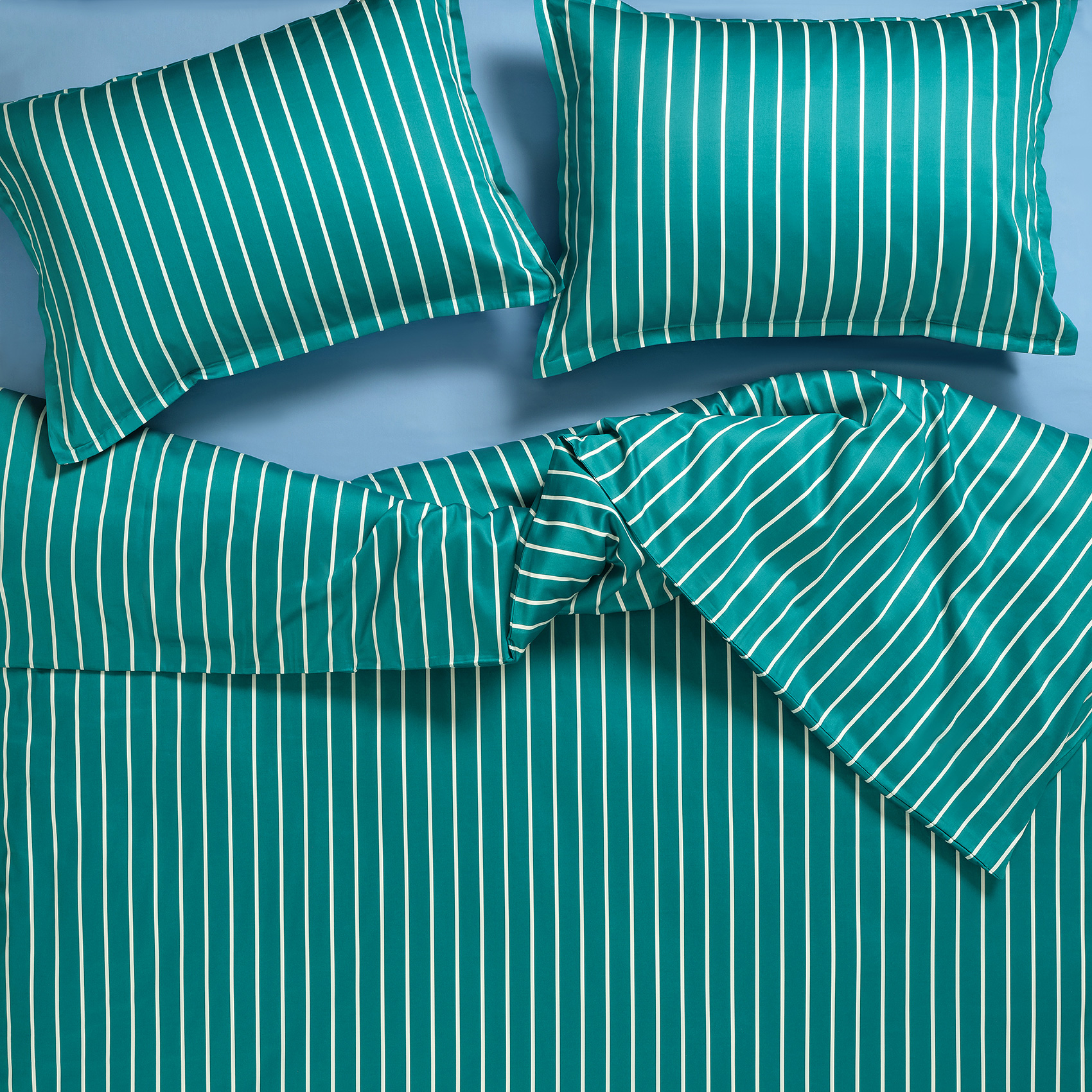 Solıd Geniş Çizgili 300 Tc Oxford 2'li Pamuk Saten Yastık Kılıfı 50x70+2 Cm Koyu Yeşil