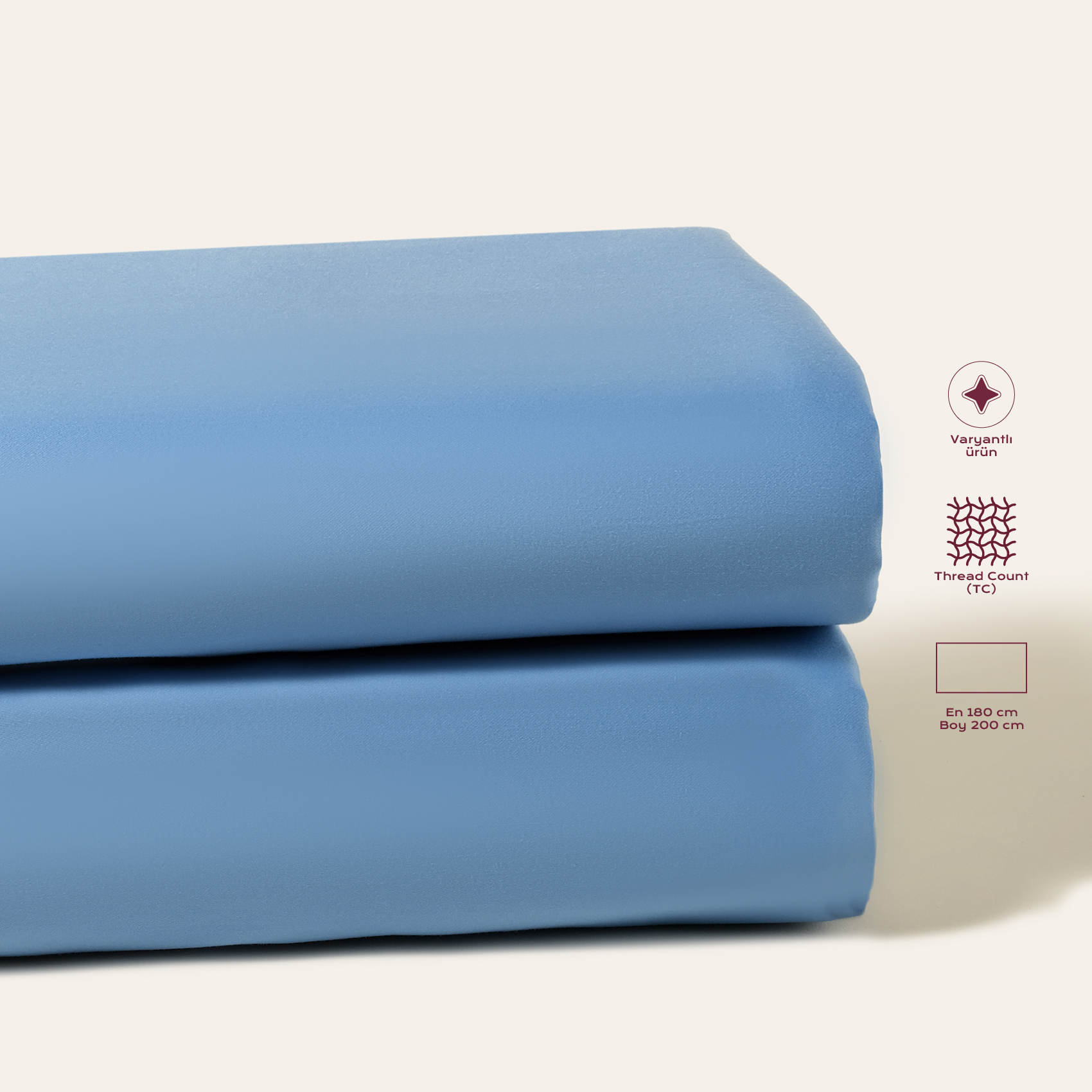 Solıd Mavi Kıng Sıze %100 Pamuk Saten Düz Çarşaf