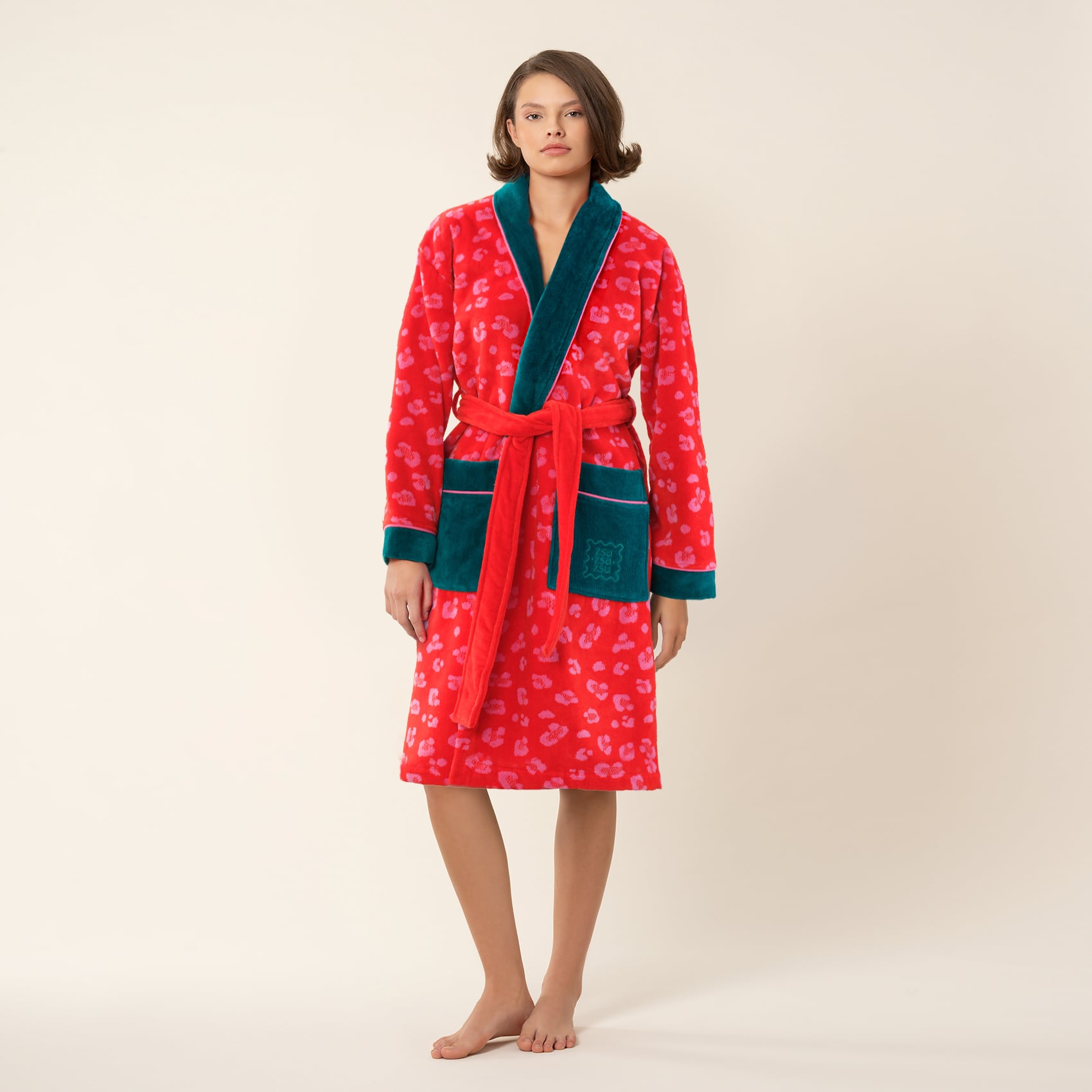 Duştan çık, enerjiyi hisset. Tabea Desenli Nakışlı Kadife Bornoz, %100 pamuklu dokusuyla doğallığın ve konforun en canlı halini sunuyor. Kadife yüzeyiyle yumuşacık bir deneyim yaratıyor, renkleriyle ruhu anında canlandırıyor. Pembe ve kırmızının cesur buluşmasına Maximalist nakış detayları eşlik ediyor. Vahşi hayvan desenleri, ev rahatlığını özgüvenli bir stile dönüştürüyor. Kemerli formu ve cepleriyle rahat, ama sıradanlıktan uzak. Evde olmanın en parlak hali. Tabea, Türkiye’de özenle üretildi.