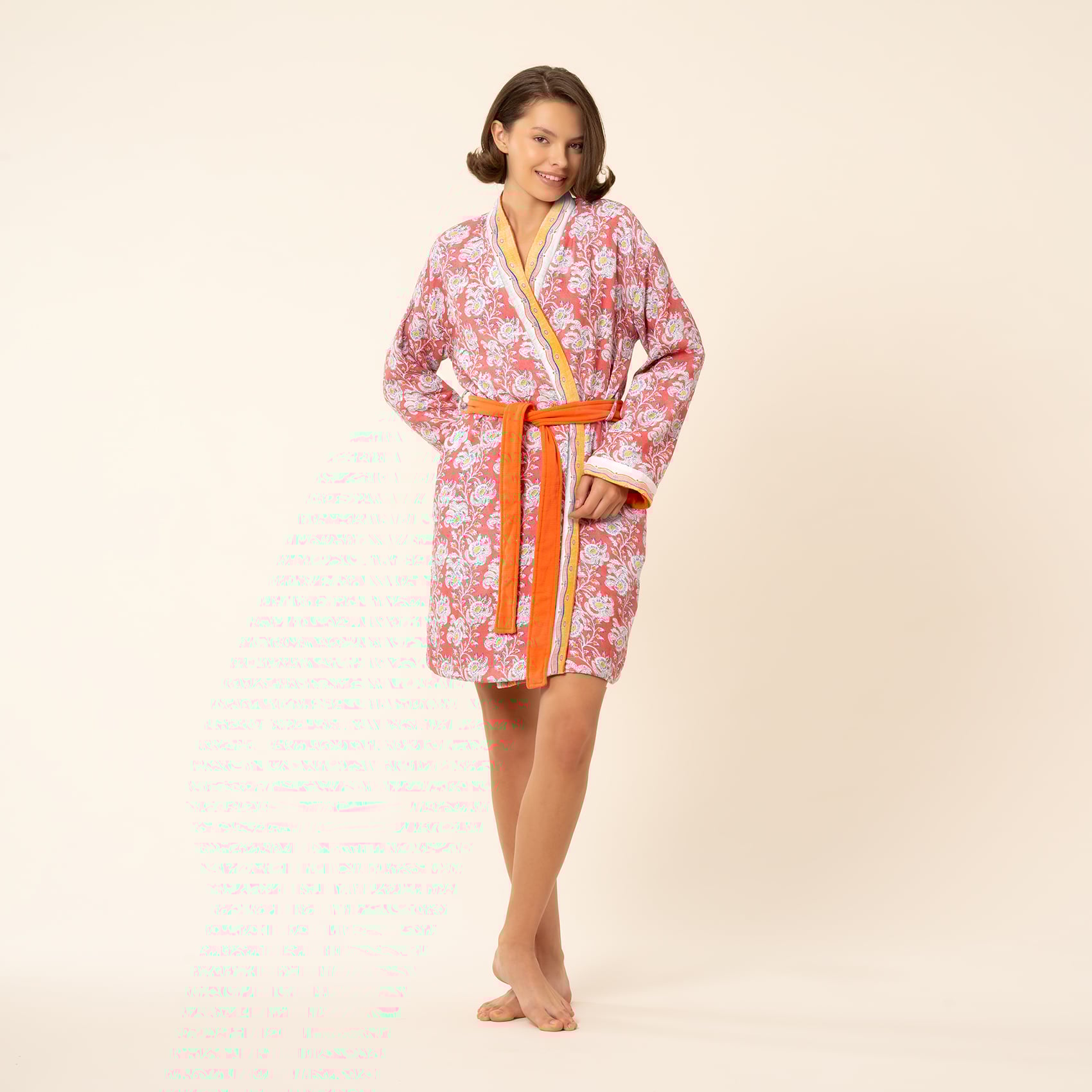 Günlük ritüellerinizi stil sahibi bir şekilde yaşamak istiyorsanız, Tabea kimono yaka müslin %100 pamuk bornoz tam size göre! Türkiye’de üretilen bu özel tasarım, iç yüzeyindeki yumuşacık pamuk dokusuyla sizi sararken, müslin dış dokusundaki eklektik desenleri ve sofistike renkleriyle aynaya bakarken bile modunuzu yükseltir. Heritage koleksiyonunun ilham dolu parçalarından biri olan Tabea, kimono yakası ve ayarlanabilir kemeriyle ev halinize bambaşka bir hava katar.