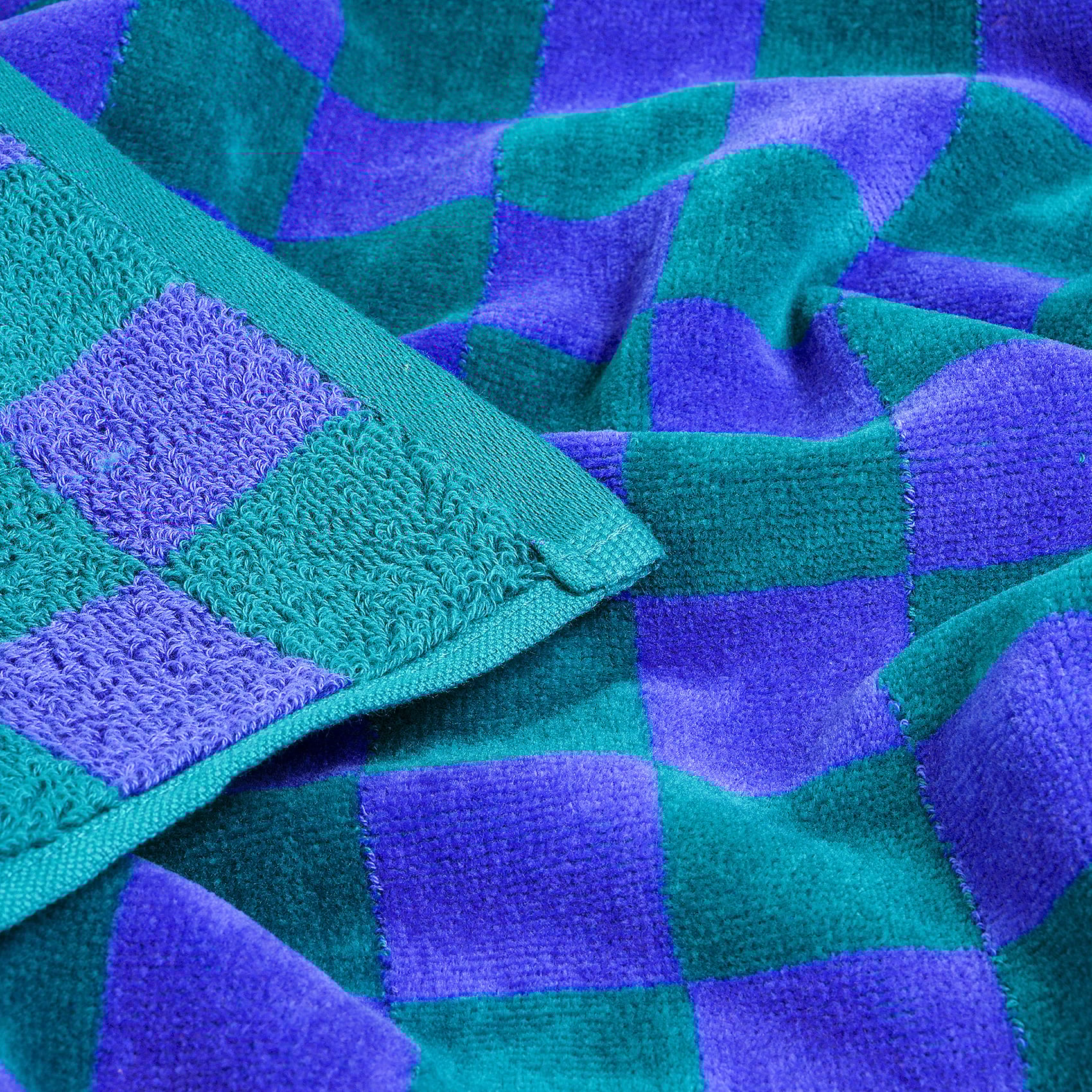 Tabea Nakışlı Damalı Kadife Pamuk El Havlusu 30x50 Cm Yeşil - Mavi