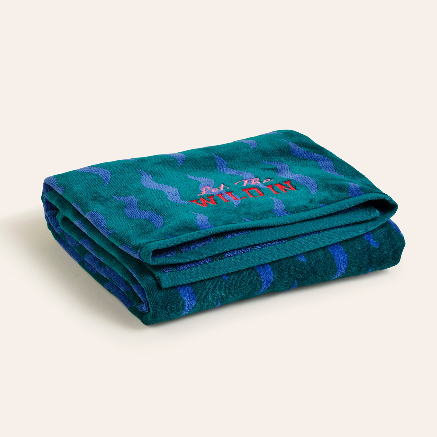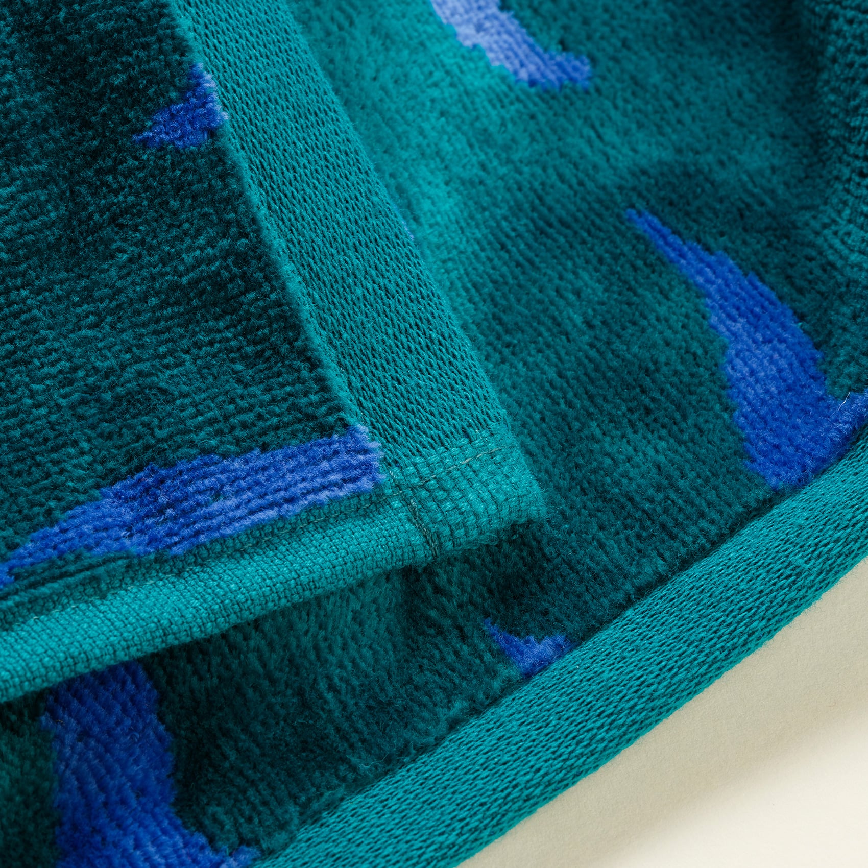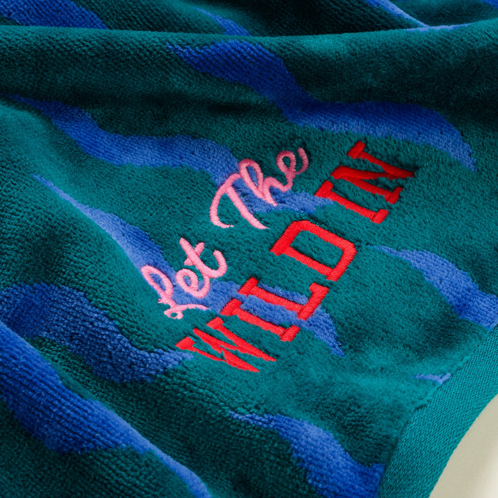 Tabea Nakışlı Kadife Pamuk Banyo Havlusu 90x150 Cm Yeşil - Mavi