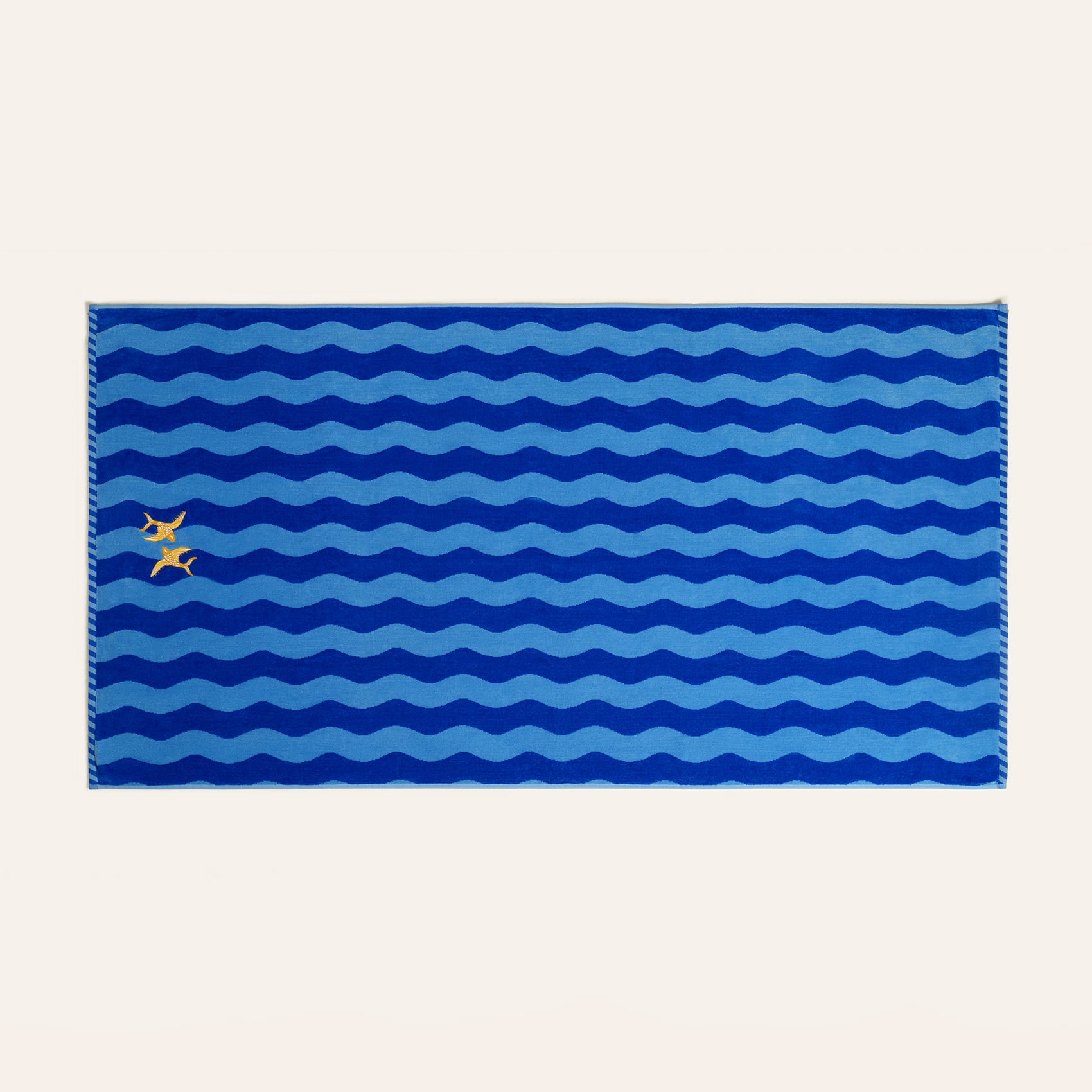 Tabea Nakışlı Pamuk Plaj Havlusu 90x180 Cm Açık Mavi - Koyu Mavi
