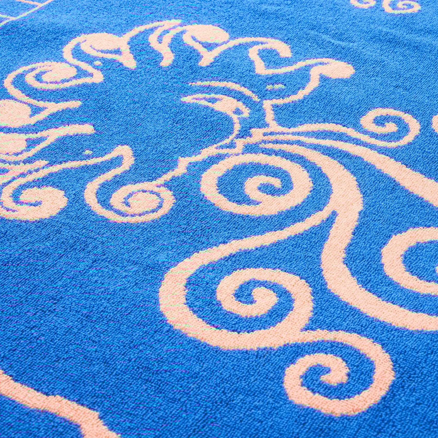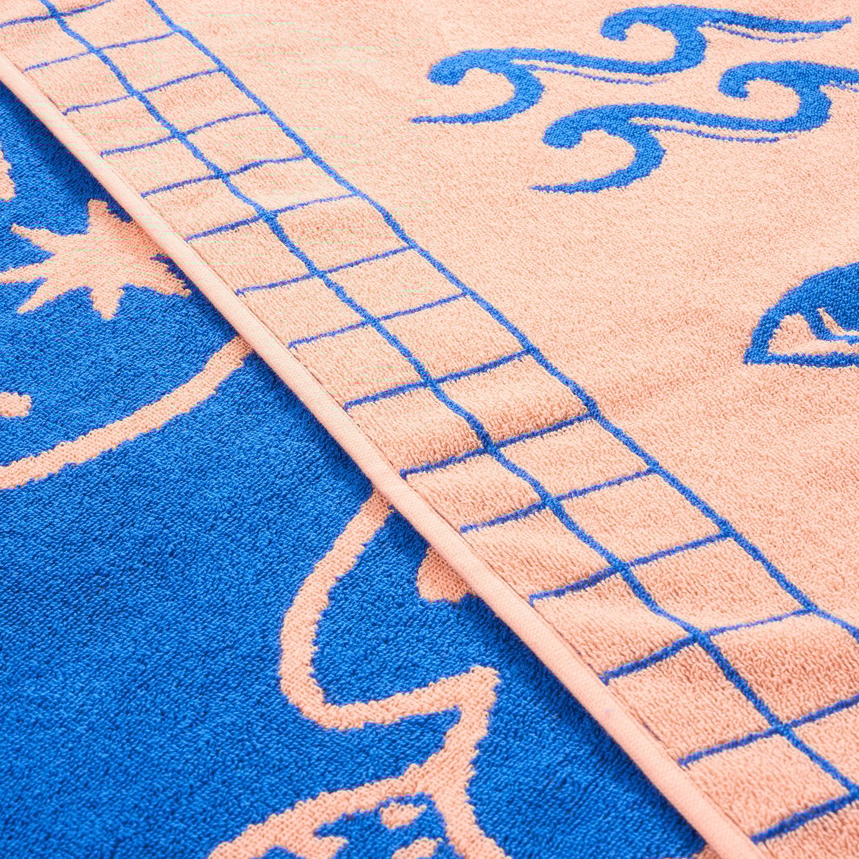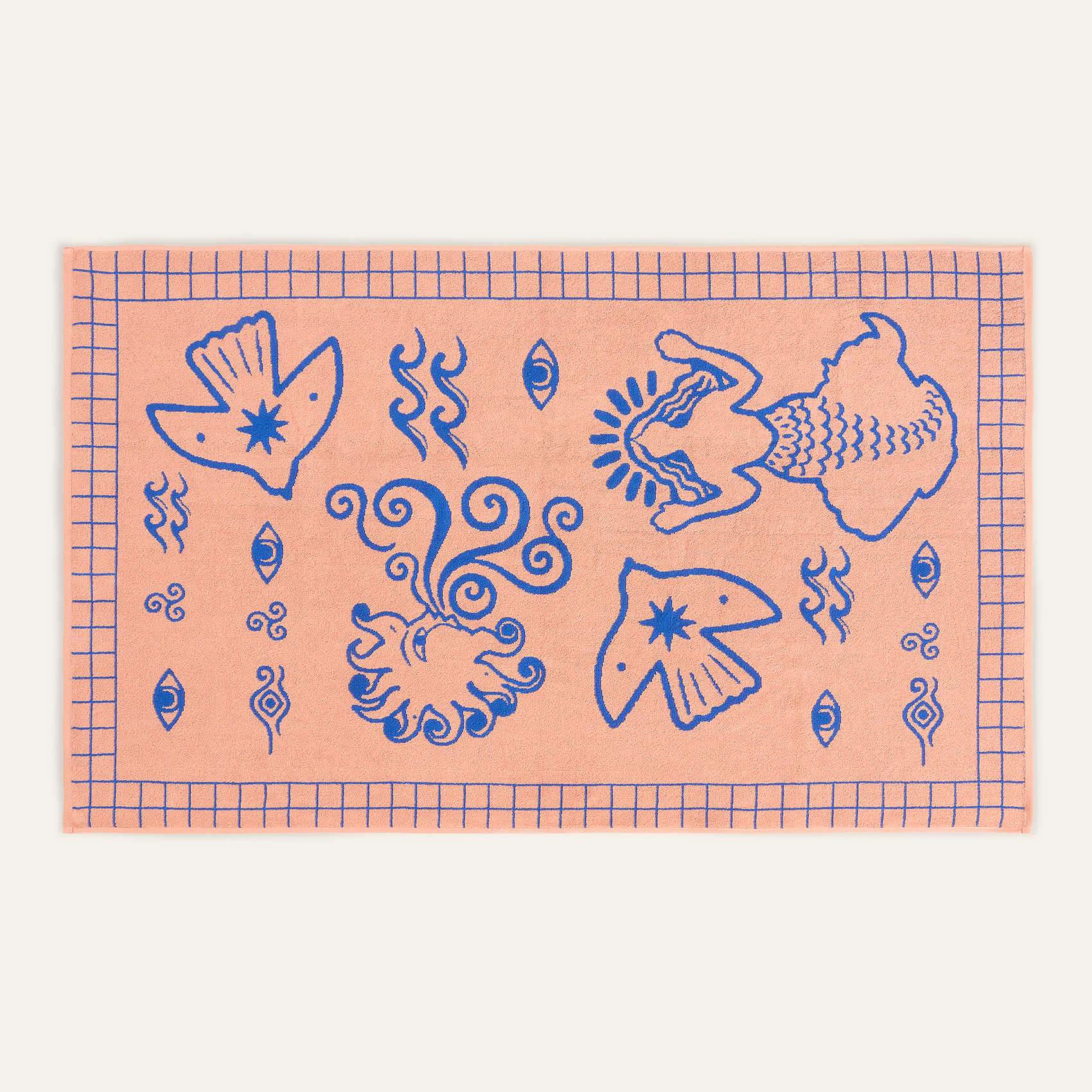 Plajda Blue modunu aç. Tabea Jakarlı %100 Pamuk Kadife Plaj Havlusu, Blue koleksiyonunun Akdeniz mitolojisinden ilham alan özgür ruhlu stiline göz kırpan desenleri ve jakarlı dokusuyla yazın güçlü eşlikçilerinden biri. %100 pamuktan üretilen kadife dokusu ciltle temasında yumuşak bir his sunuyor. 90x150 cm ölçüsüyle kumda yayılmak, denizden çıkınca sarınmak ya da havuz kenarında güneşle buluşmak için ferah ve konforlu bir alan sağlıyor. Tabea çabucak kurulanmanızı sağlar ve her dokunuşta iyi hissettirir. Türkiye’de üretilmiştir.