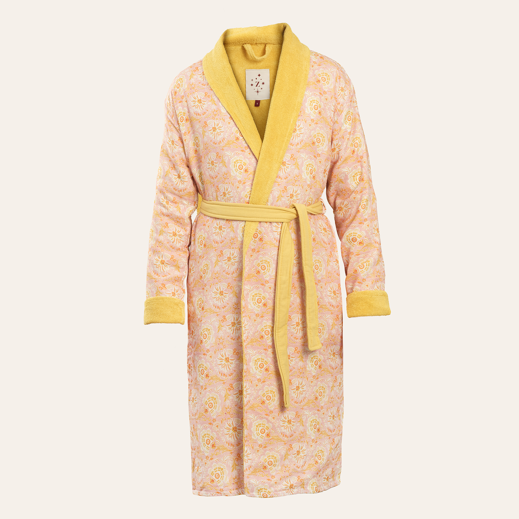 Tabea Şal Yaka Müslin Pamuk %100 Pamuk Bornoz - Sarı