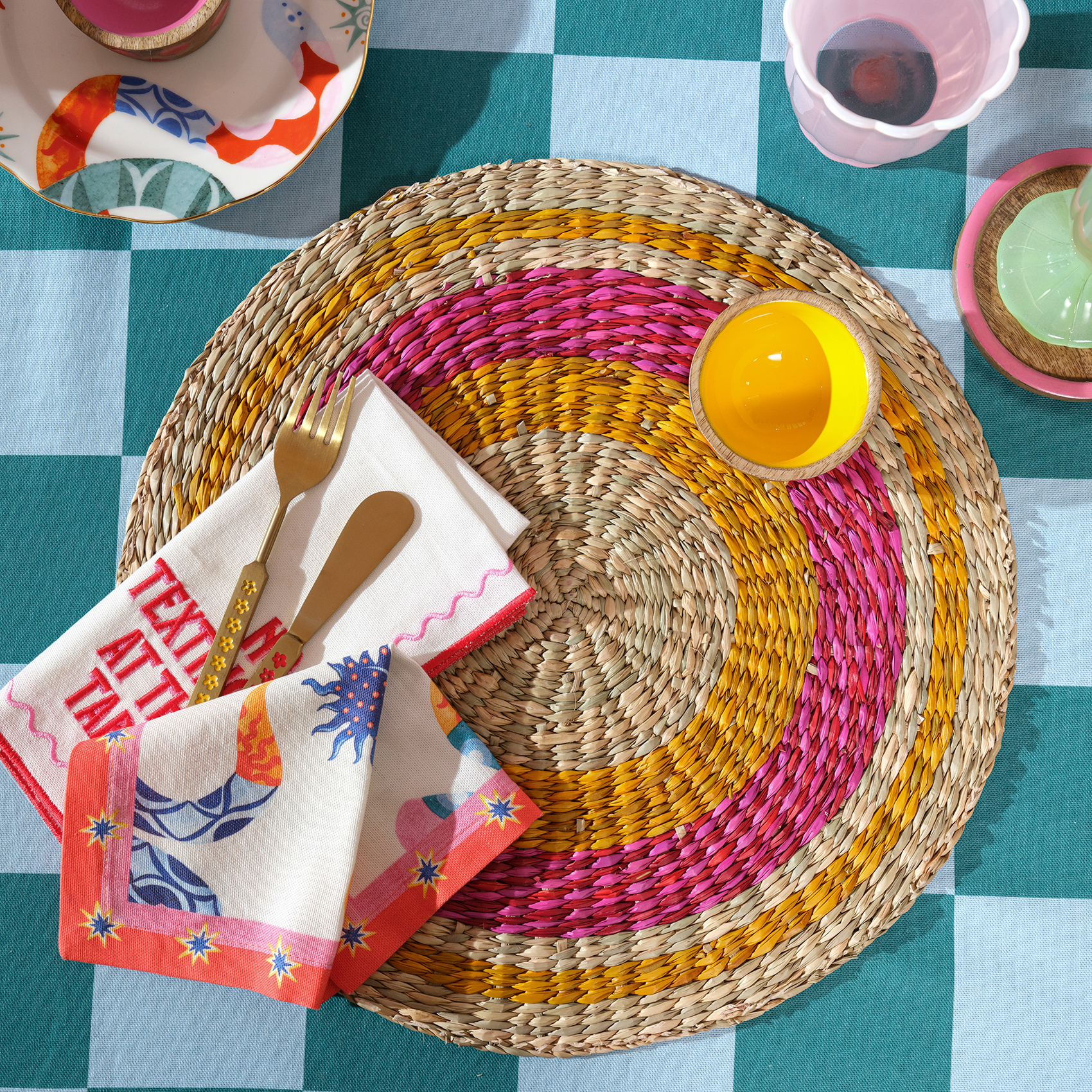 Doğanın güzellikleriyle Vietnamlı zanaatkârların yaratıcılığı sofralarınıza neşe getiriyor! Sürdürülebilir deniz çayırından dokunan Tam Dao Amerikan servis, her detayı el işçiliğinin sıcaklığıyla şekillenmiş eşsiz bir tasarım. Doğal dokusu, enerjik ruhu ve otantik tarzıyla sofralarınıza hareket ve hayat katıyor. Bu iki parçalık set, her öğünü bir kutlama havasına dönüştürüyor. Sadece kuru bir bezle temizleyin ve bu doğal zarafetin keyfini uzun yıllar çıkarın.