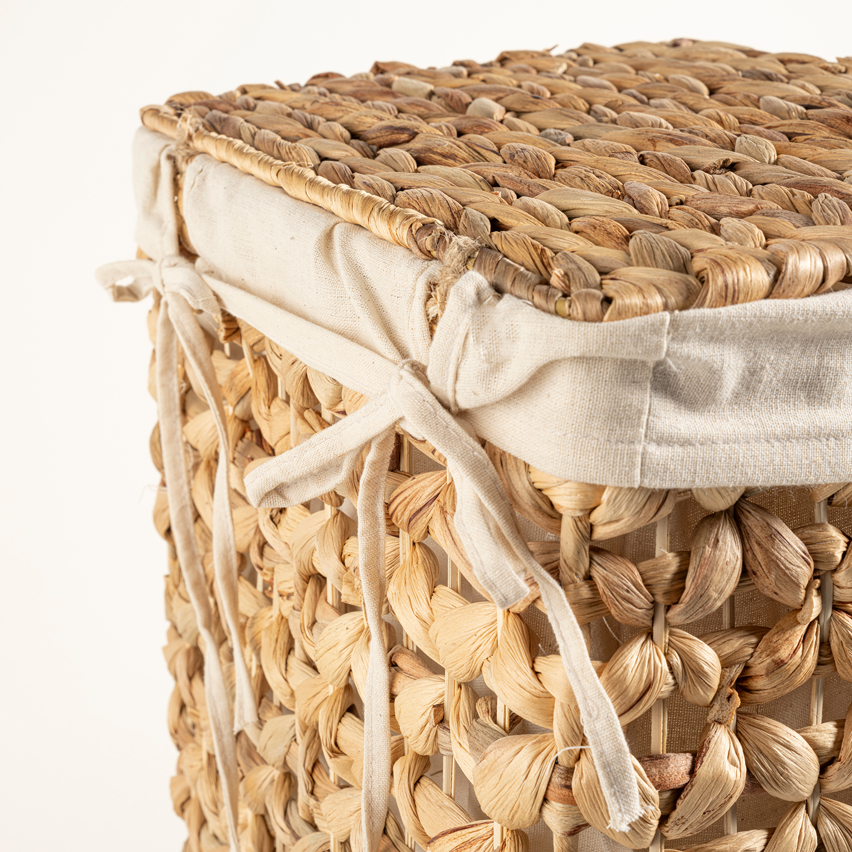 Tam Dao çamaşır sepeti, Vietnam köylerinde nesilden nesile aktarılan el dokumacılık yöntemini sürdüren usta zanaatkârlar tarafından özenle üretiliyor. Bölgede yetişen doğal su sümbüllerinden örülen bu sepetin her düğümünde artizan dokunuşlarının inceliği var. Natürel rengiyle uyumlu kumaş içliği kullanım kolaylığı ve ekstra hijyen sağlıyor. Nemli ortamdan uzak tutmanızı tavsiye ediyoruz.