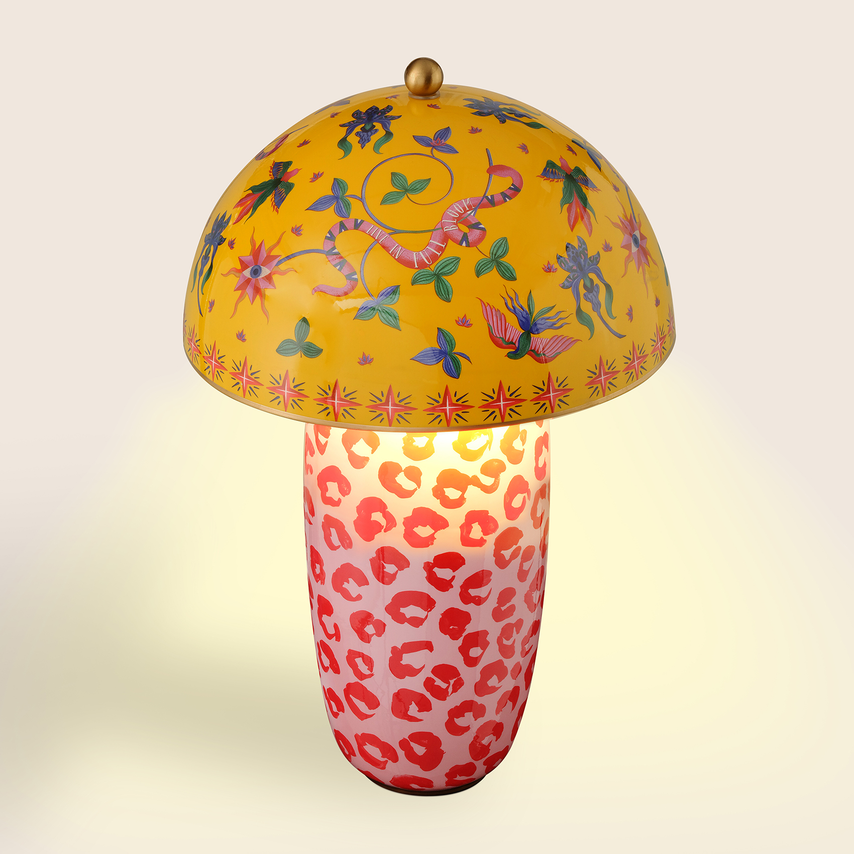 Zsa Zsa Zsu tasarımcılarının özgür hayal gücünden doğan Tanbu Porselen Abajur, Maximalist koleksiyonun ışıkla kurduğu görkemli sahneyi temsil ediyor. Porselen gövdeye dekal tekniğiyle aktarılan desenler, her bakışta merak uyandıran yeni bir hikâye anlatıyor. Kubbe formundaki metal başlık ışığı teatral bir etkiye dönüştürürken, el boyaması altın bordür bu gösteriyi sofistike bir parıltıyla tamamlıyor. Tanbu, bulunduğu mekânda enerjiyi yükselten, dikkatleri üzerine toplayan ve Maximalist ruhu canlı tutan bir yıldız gibi parlıyor.