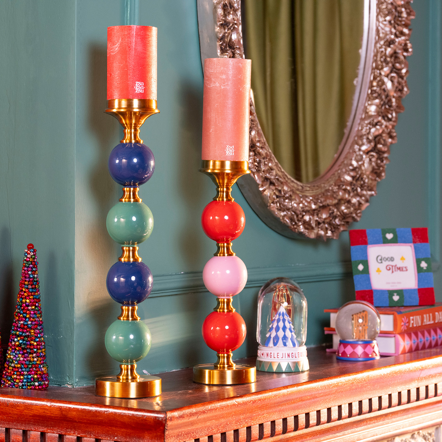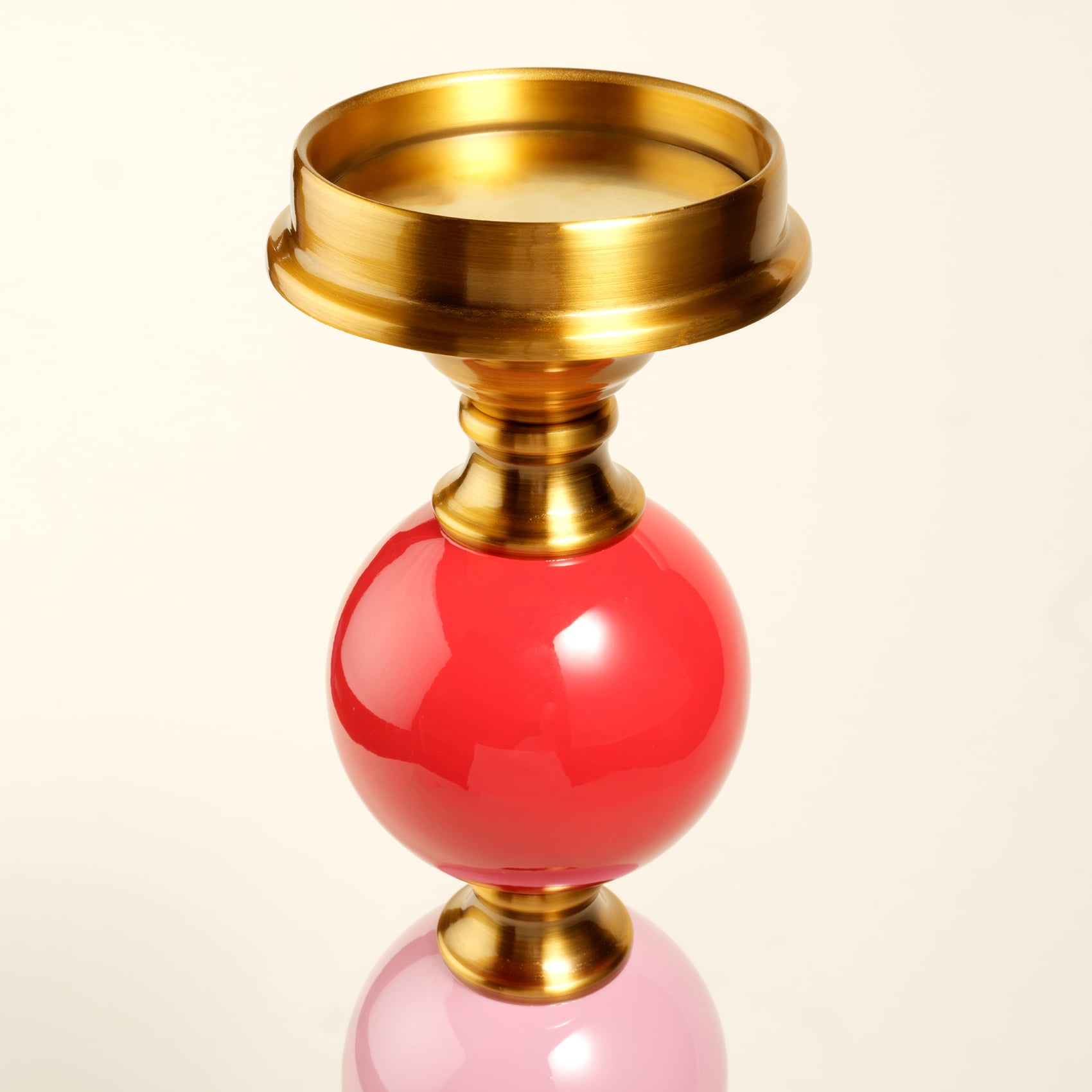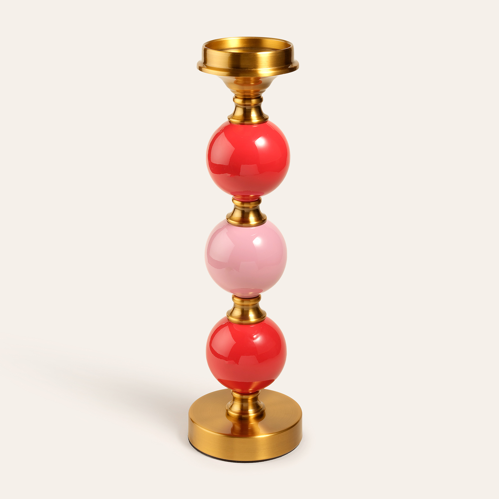 Maximalist koleksiyonun sahneye çıkardığı Tanbu Porselen Şamdan, ışığı bir performansa dönüştüren heykelsi bir obje. Porselen gövdeyi saran altın metal detaylar sofistike bir ışıltı katarken, sprey boyama koyu mavi ve yeşil küreler ışığın etrafında neşeli bir ritimle yükseliyor. 54 cm’lik renkli silueti mekâna canlı bir enerji yayıyor ve atmosferi anında yükseltiyor. Tanbu tek başına bir yıldız gibi parlar, eşleştiğinde ise bulunduğu alanı renkli bir oyuna dönüştürür. Her bakışta şaşırtır, her ışık kıvılcımı yeni bir hikâye anlatır.