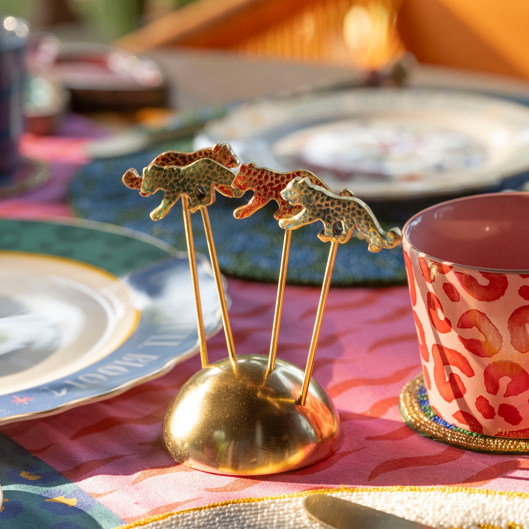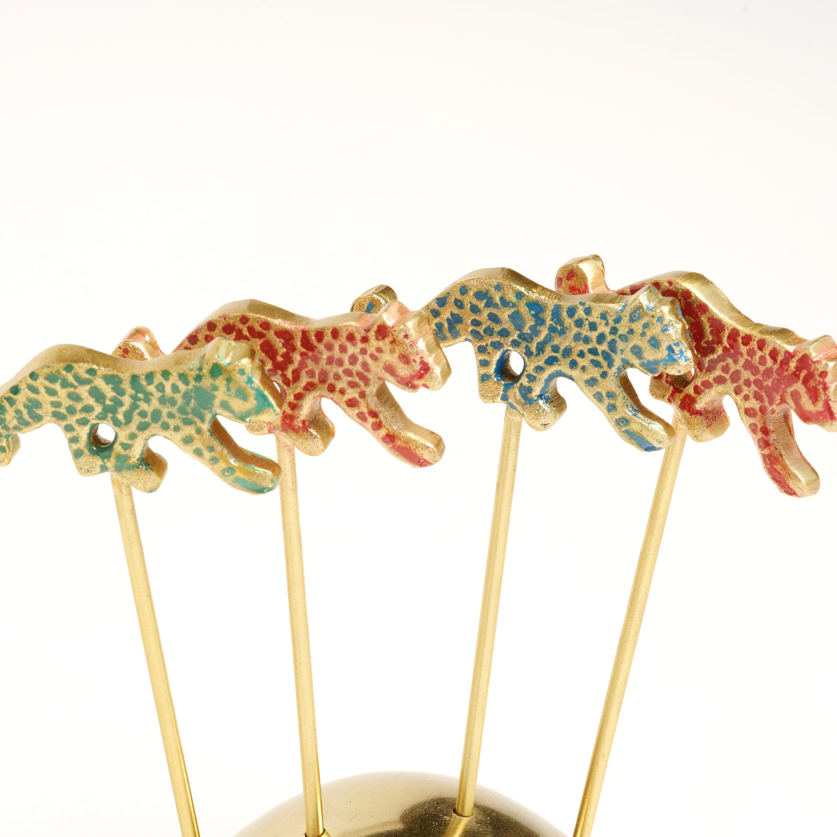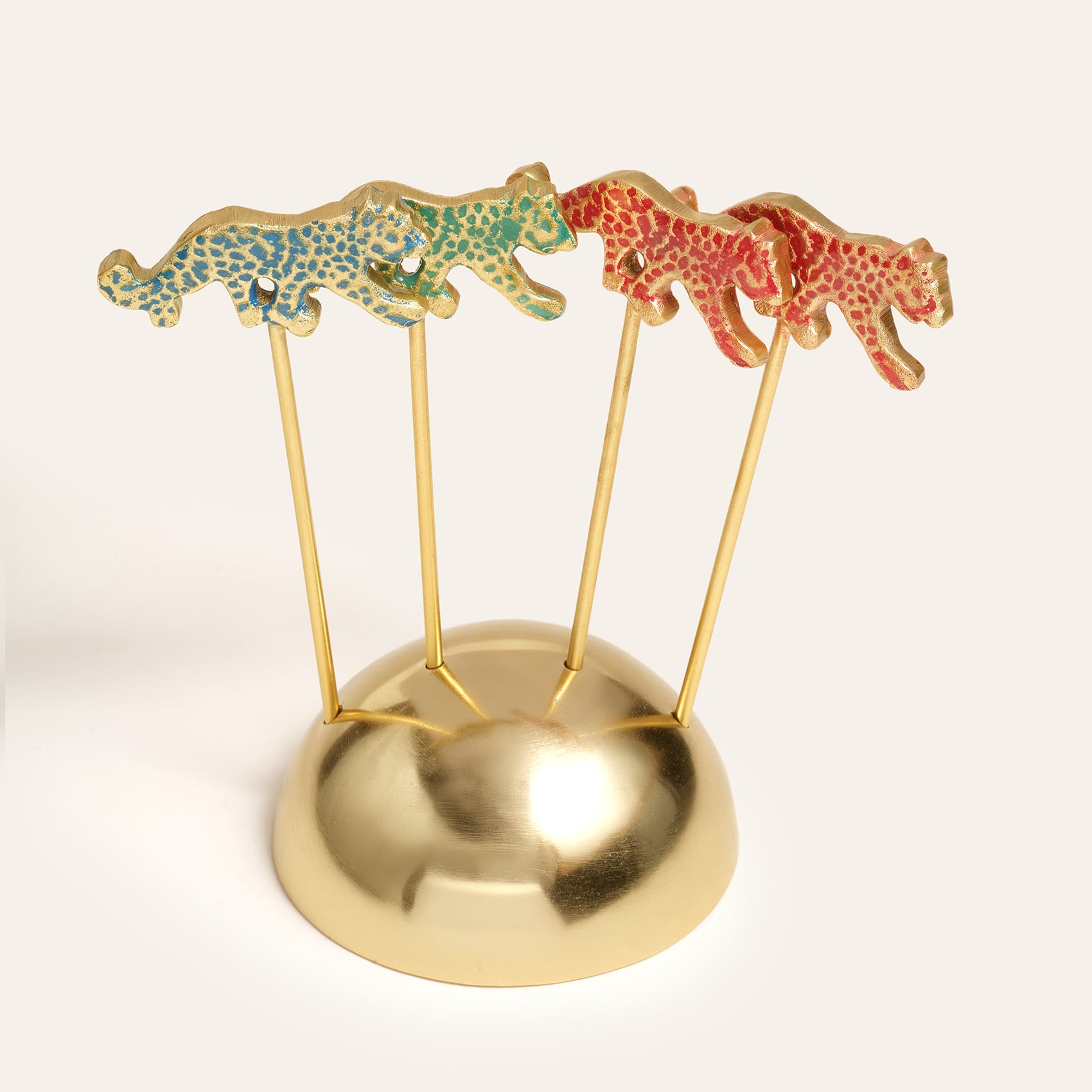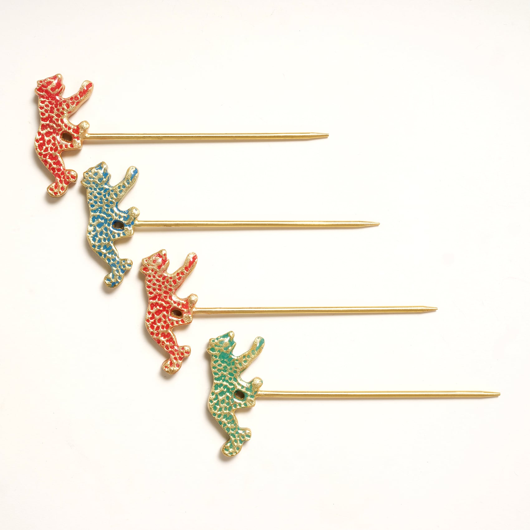 Maximalist koleksiyonun cesur ruhunu yansıtan bu kokteyl çubukları, renkli kaplan figürlü dekoratif uçlarıyla bardaklarınıza vahşi bir şıklık katıyor. Altın tonlu paslanmaz çelik ve pirincin zarif birleşimi, her detayıyla dikkat çeken bir görünüm sunuyor. Yarı küre formundaki standı, çubukları düzenli ve stil sahibi bir şekilde sergiliyor. Hindistan’da ustalıkla üretilen Tanda 5 parça çelik kokteyl çubuğu seti, partilerden özel davetlere kadar her sunumu görsel bir şölene dönüştürüyor.