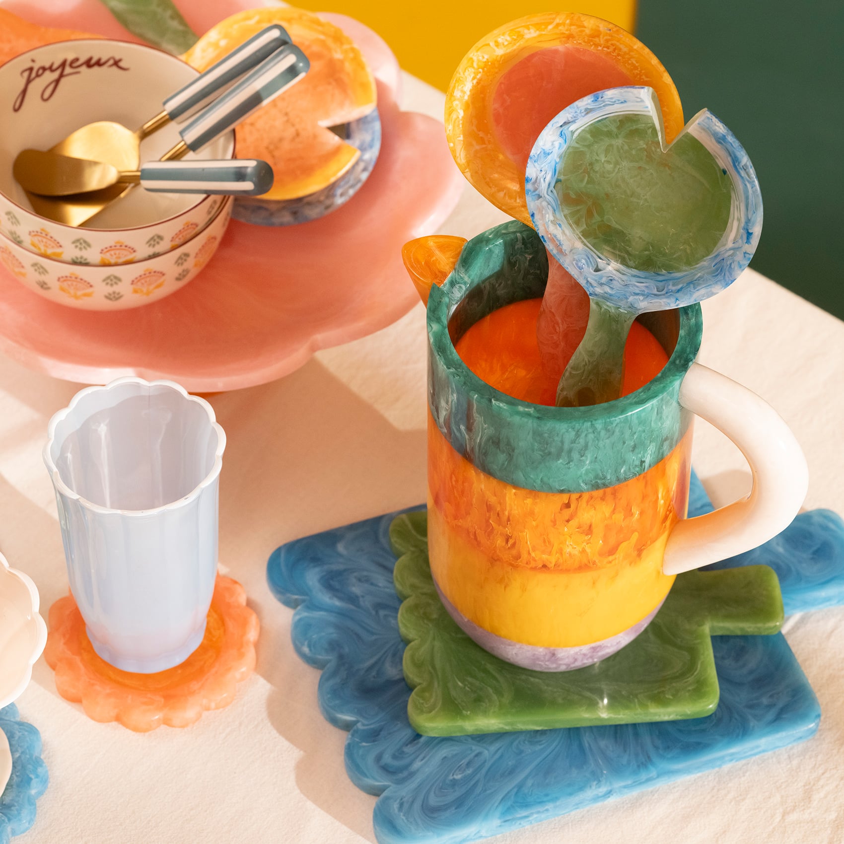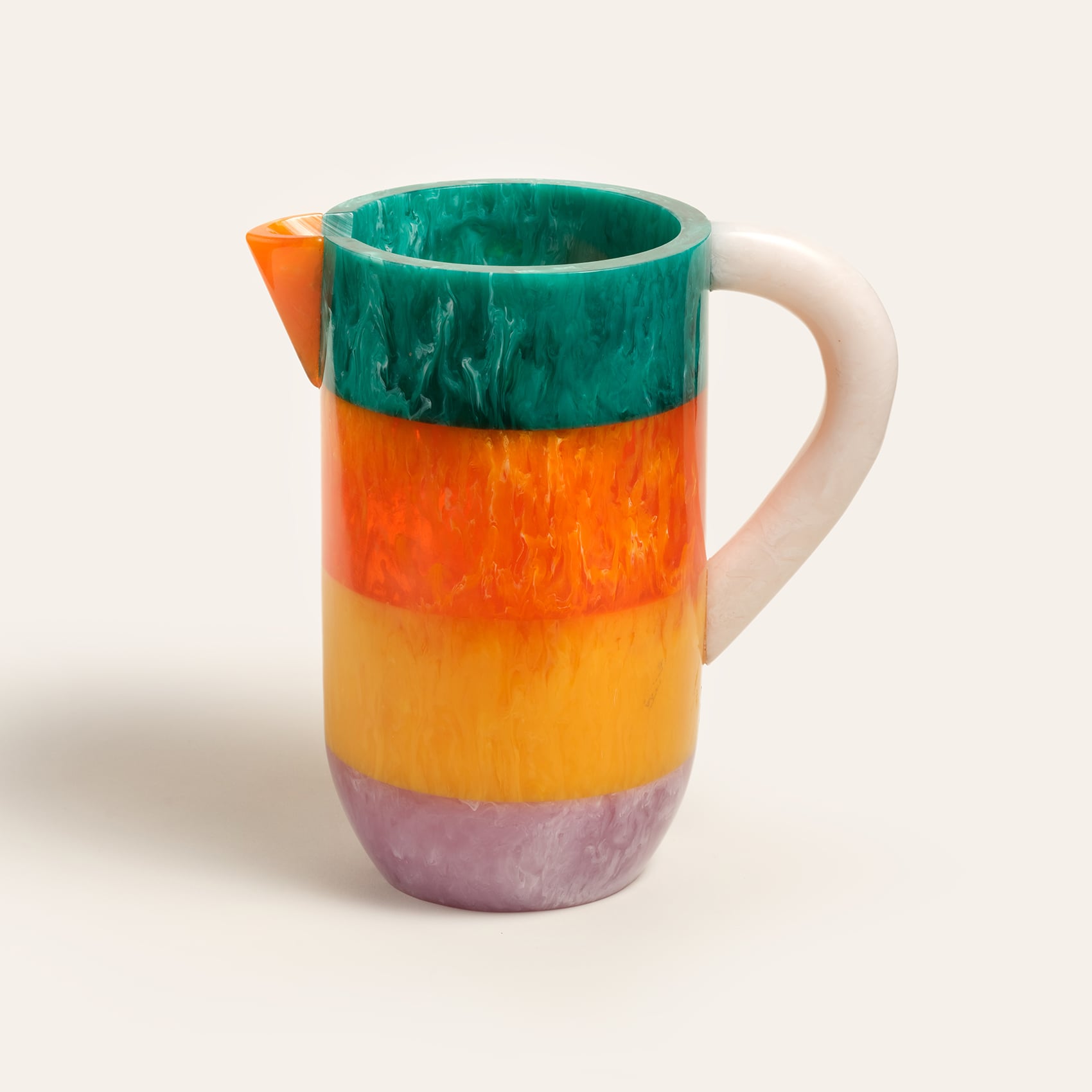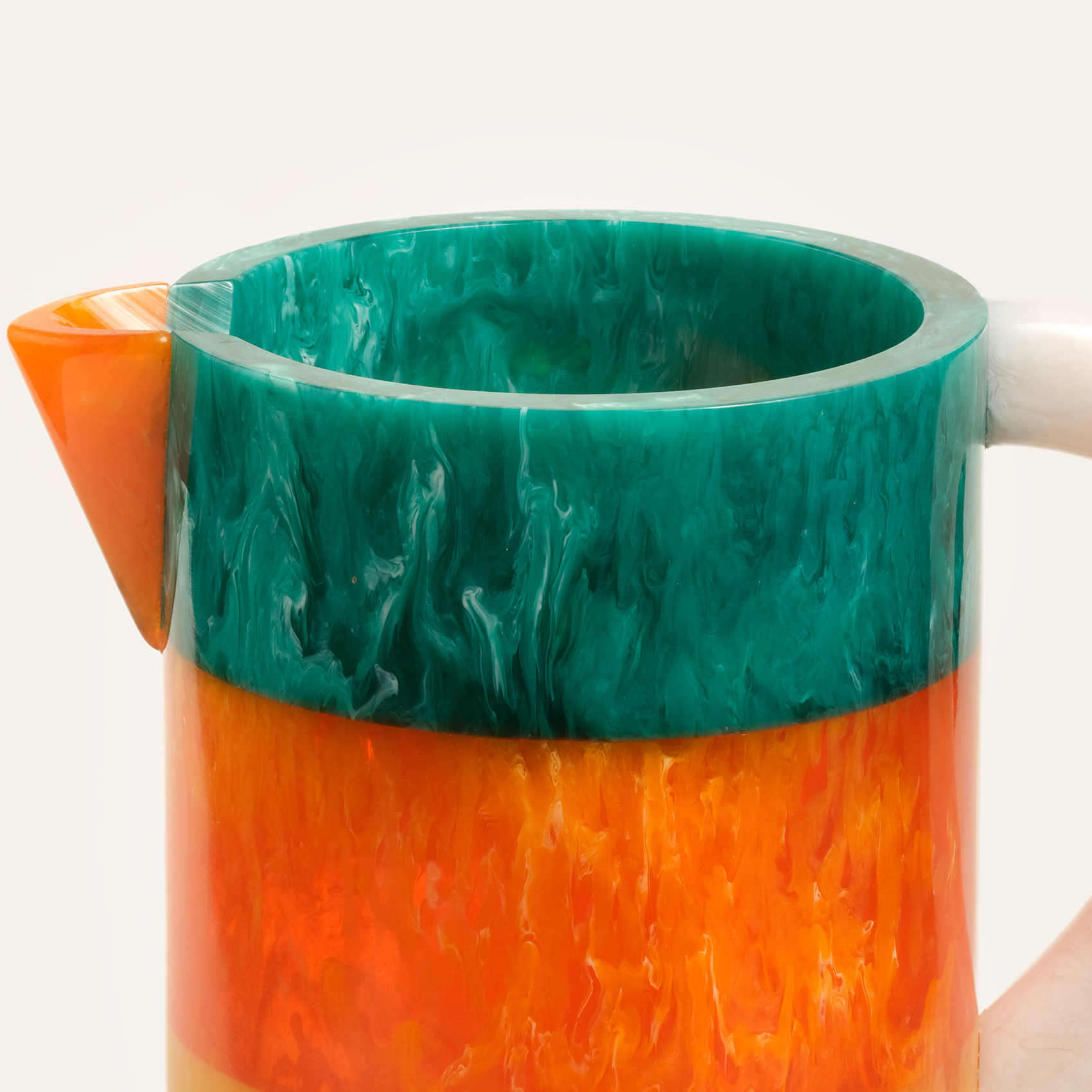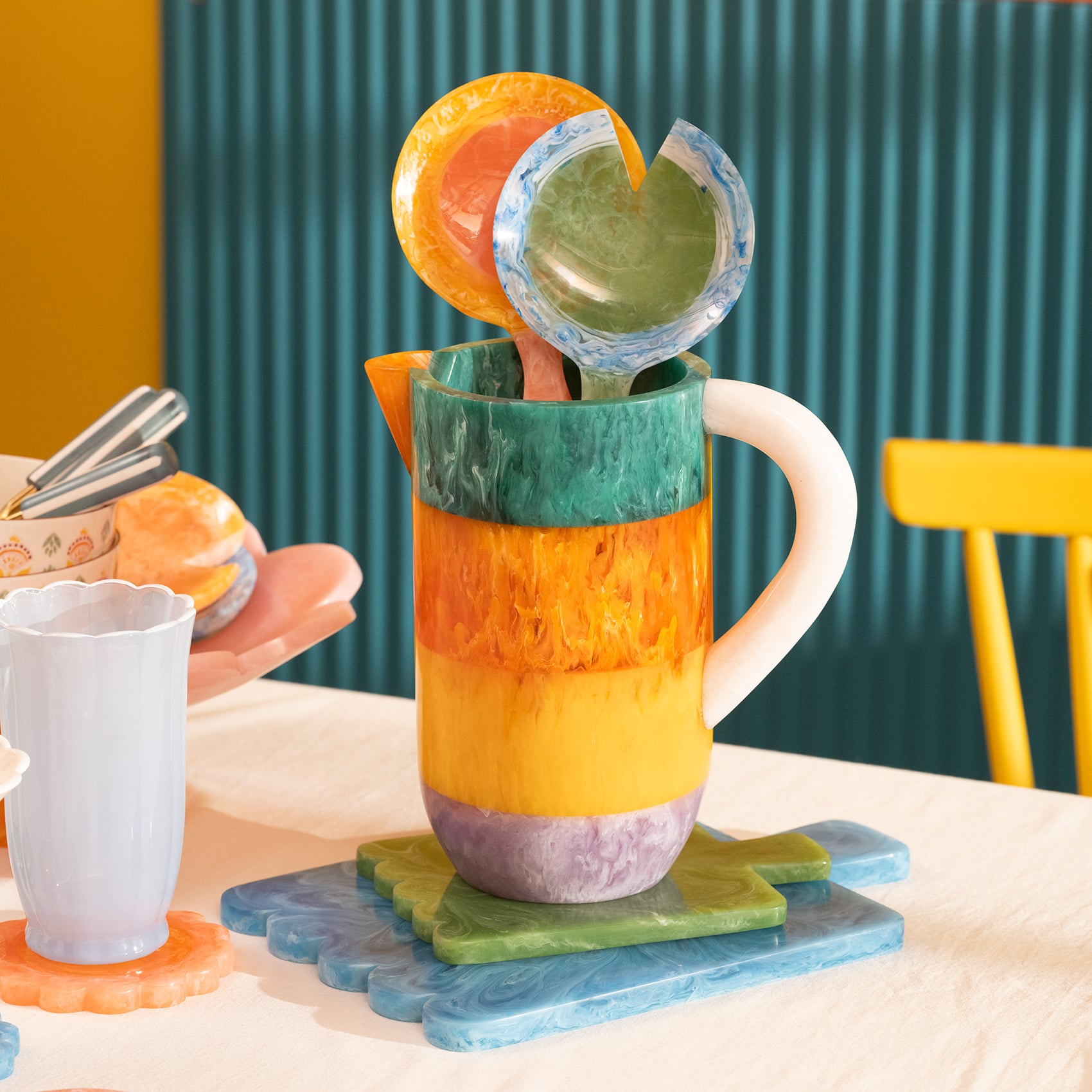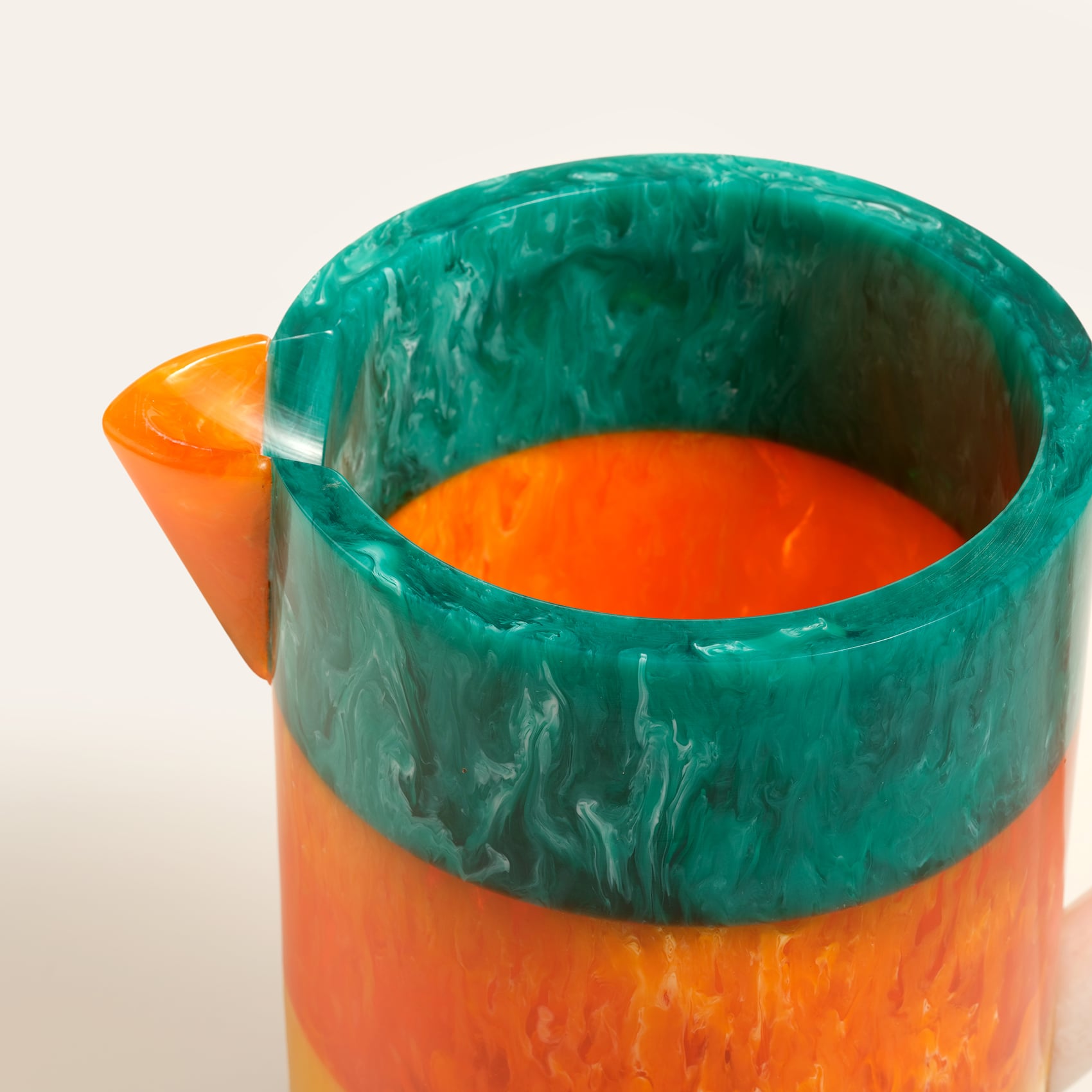Tanda sürahi, Hindistan’daki usta zanaatkârların el işçiliğiyle hayat buluyor. Modern tasarımı ve harika renkleriyle hayatı güzelleştiren bu sürahi, gerçek bir arzu nesnesi. Cesur hatları ve dikkat çeken detaylarıyla Tanda, hem günlük kullanım için hem de özel davetlerinizde masanızın yıldızı olmaya hazır. Dayanıklı reçine malzemesi, uzun ömürlü kullanım sunarken, tasarımındaki enerjik dokunuşlar, yaşam alanlarınıza ilham verirken sofralarınıza da renk katıyor.