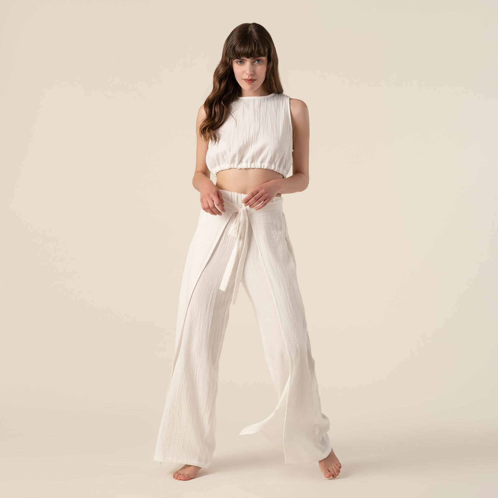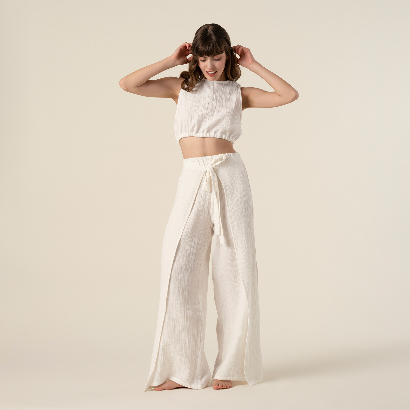 %100 pamuk kumaştan yapılan bu pantolonu ister plajda mayonun üstünde ister tatilin herhangi bir anında veya seyahatte kullanın; her yerde kendinizi çok rahat hissedeceksiniz. Tavas pantolonun geniş paçaları hareket kabiliyetinizi artırırken, bağcıkla sabitlenen bel bölümü kolay kullanım ve rahatlık sağlıyor. Tavas her yıkamanın ardından ilk günkü yumuşaklığını sunmaya devam ediyor.