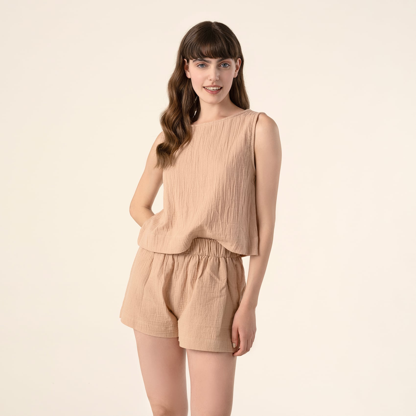 %100 pamuk kullanılarak üretilen Tavas şort, bedene rahat oturan kusursuz kesimi ve doğal görünümüyle sıcak havaların favorisi olmaya aday. Etik değerleri gözeten tesislerde titiz işçilikle üretilen bu şort, yalın ve şık tasarımıyla sadece plajda değil yaz boyunca tüm gün stilinizin anahtar parçası olacak.
