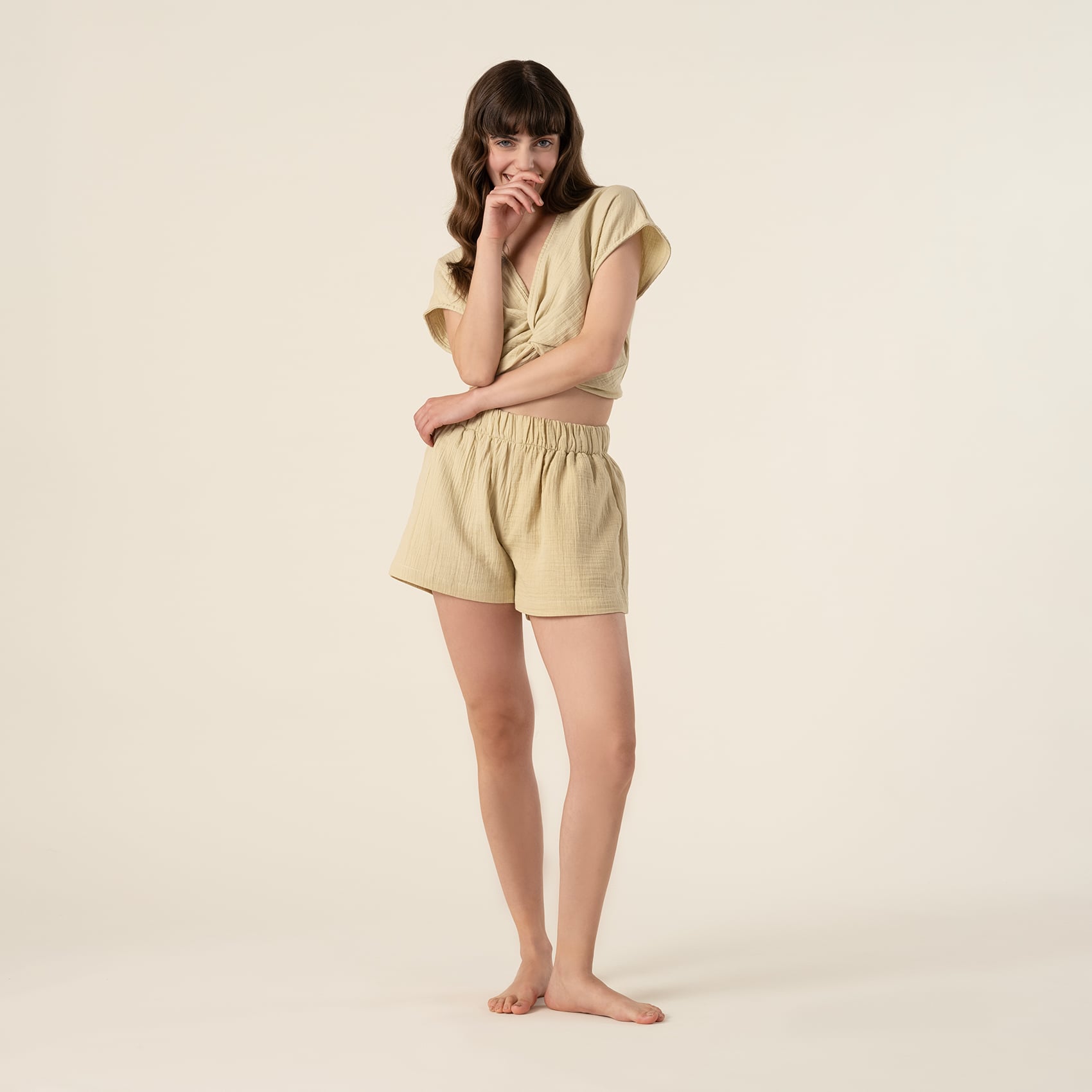 %100 pamuk kullanılarak üretilen Tavas şort, bedene rahat oturan kusursuz kesimi ve doğal görünümüyle sıcak havaların favorisi olmaya aday. Etik değerleri gözeten tesislerde titiz işçilikle üretilen bu şort, yalın ve şık tasarımıyla sadece plajda değil yaz boyunca tüm gün stilinizin anahtar parçası olacak.