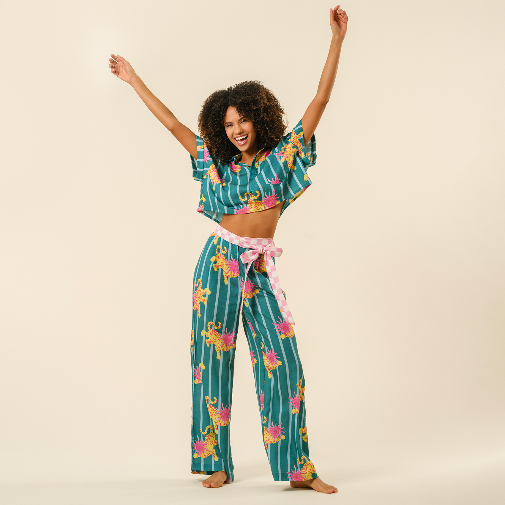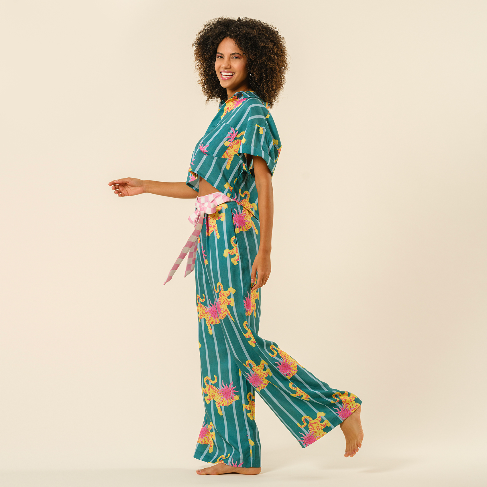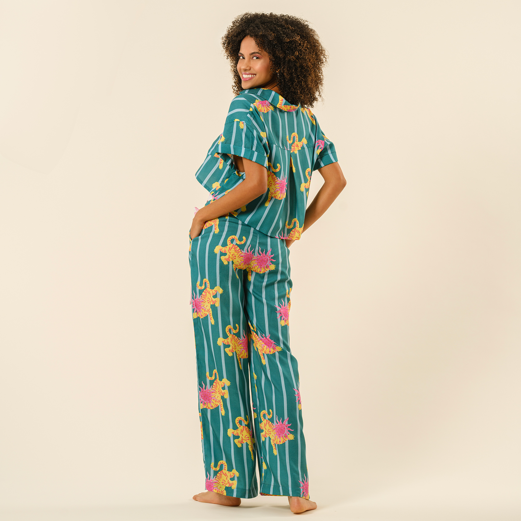 Cesur desenler, enerjik renkler, özgüveni yüksek bir duruş! Tavas gömlek, sıradanlığa meydan okuyan tasarımıyla cesur stillerin favorisi. Akışkan ve nefes alan %100 Tencel dokusu ferahlık katarken, vahşi kaplan desenleri ve dinamik çizgileriyle enerjiyi yükseltiyor. Plajdan şehir sokaklarına, gündüzden geceye her kombini anında canlandırıyor.